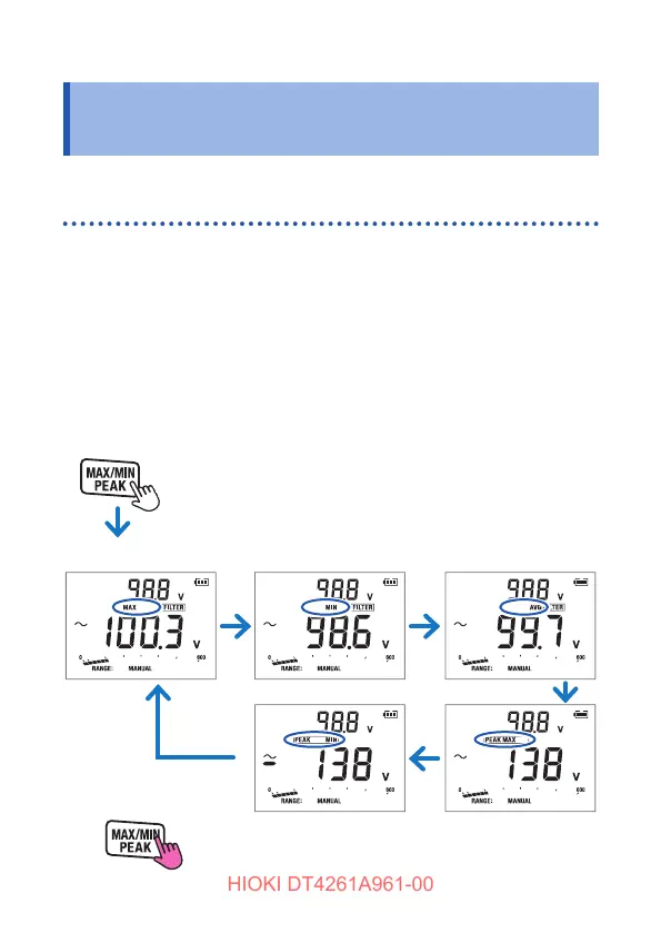 • The display of the maximum, minimum, average, and peak values is