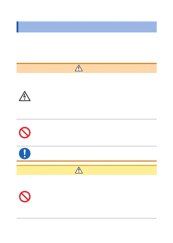 感電事故を避けるため、電源を切り、測定コード、また