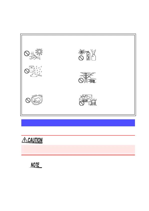 Avoid the following locations that could cause an accident or damage to