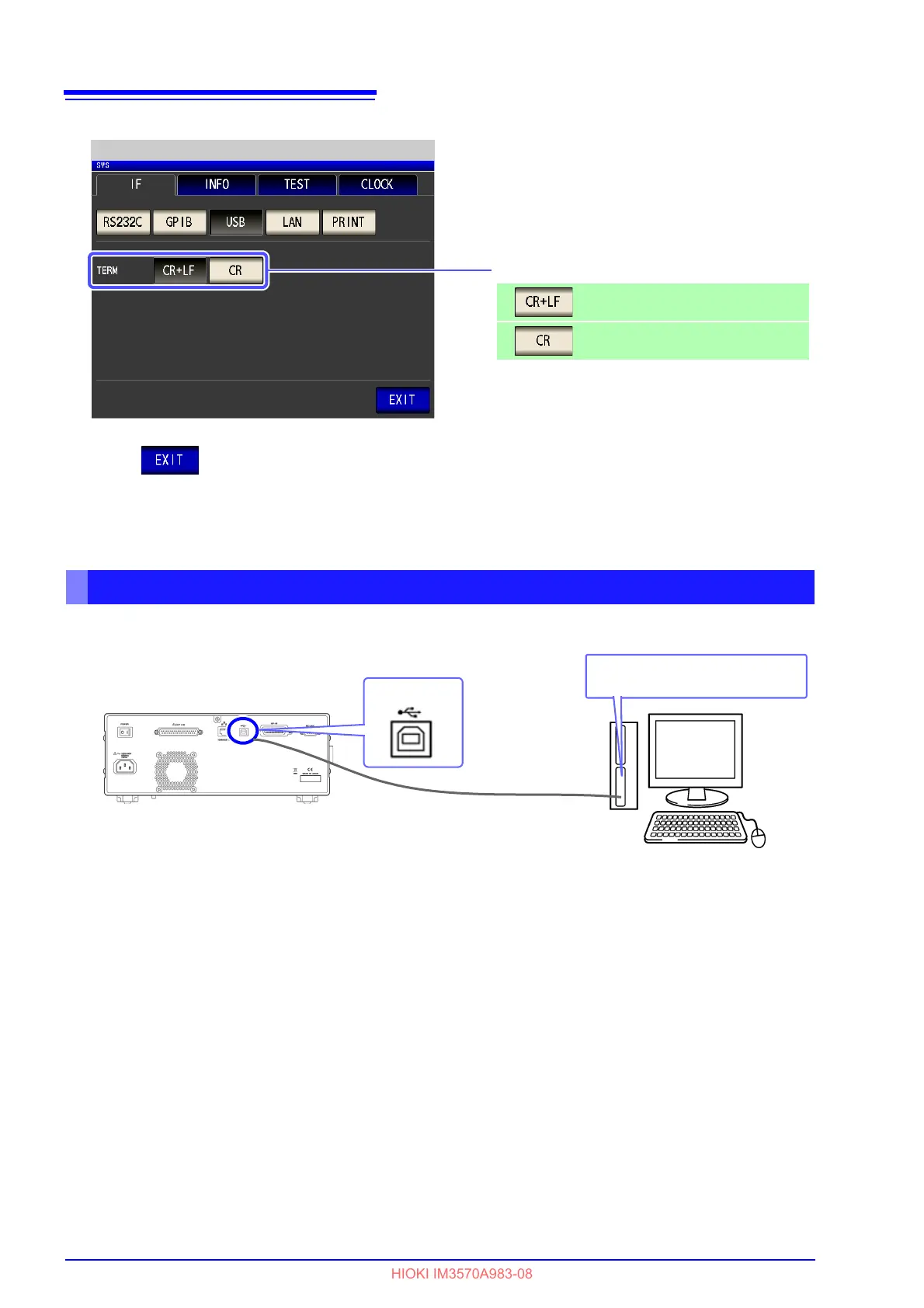 Hioki IM3523A - Connecting the USB Cable