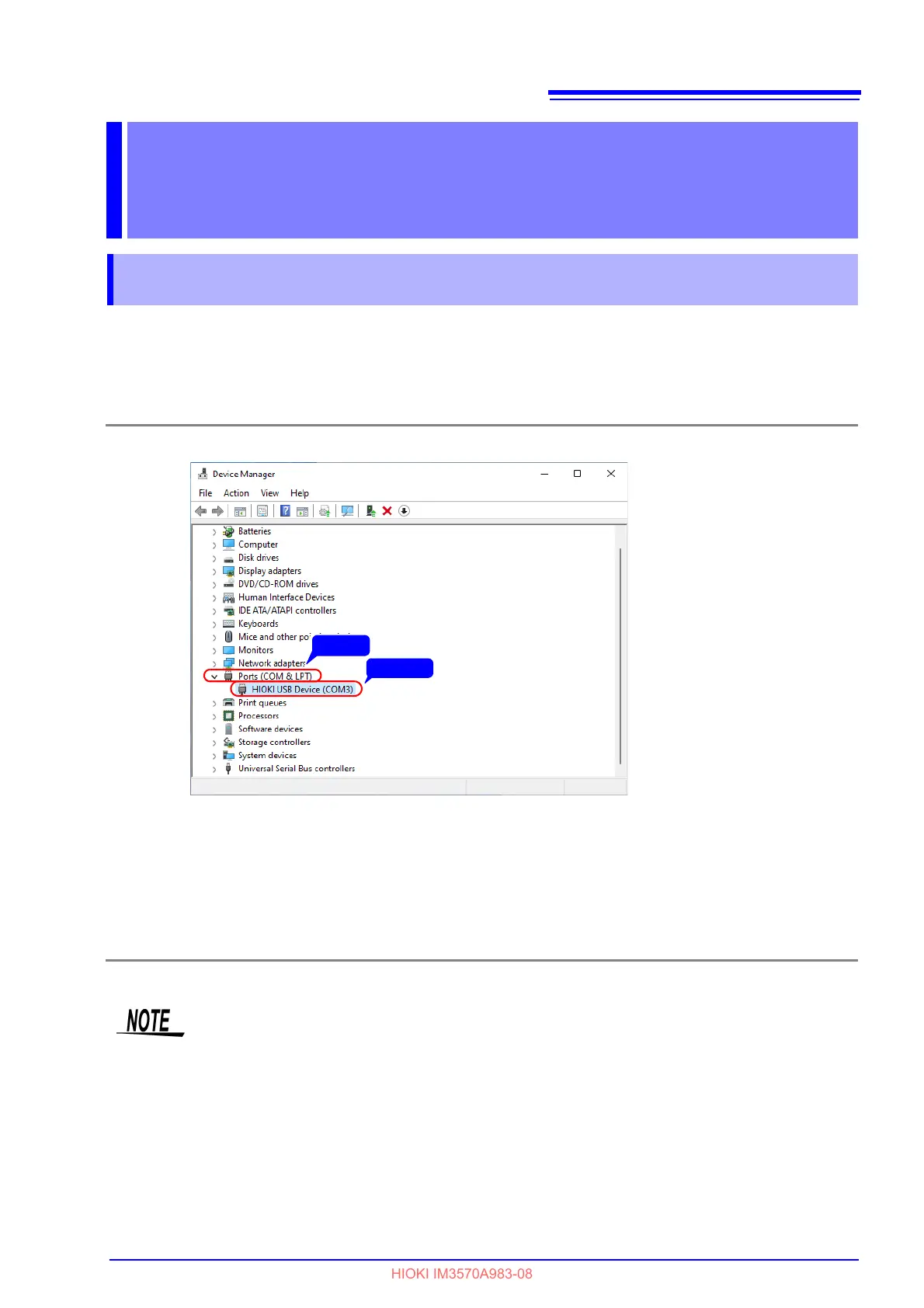 number to the right of “HIOKI USB Device” in the [Ports (COM & LPT)] list.