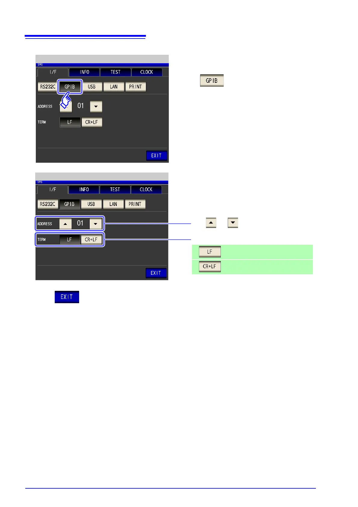 Use or to set the GP-IB address.