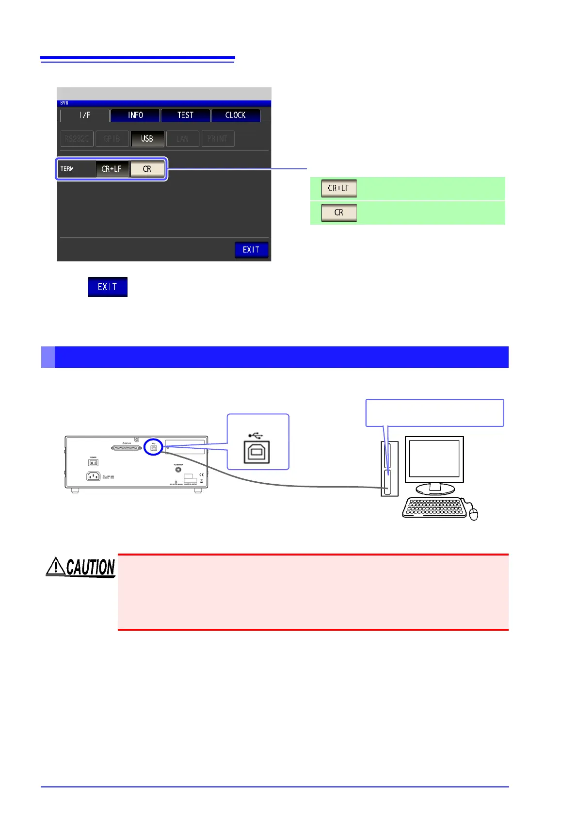 • To avoid faults, do not disconnect or reconnect the USB cable during instrument