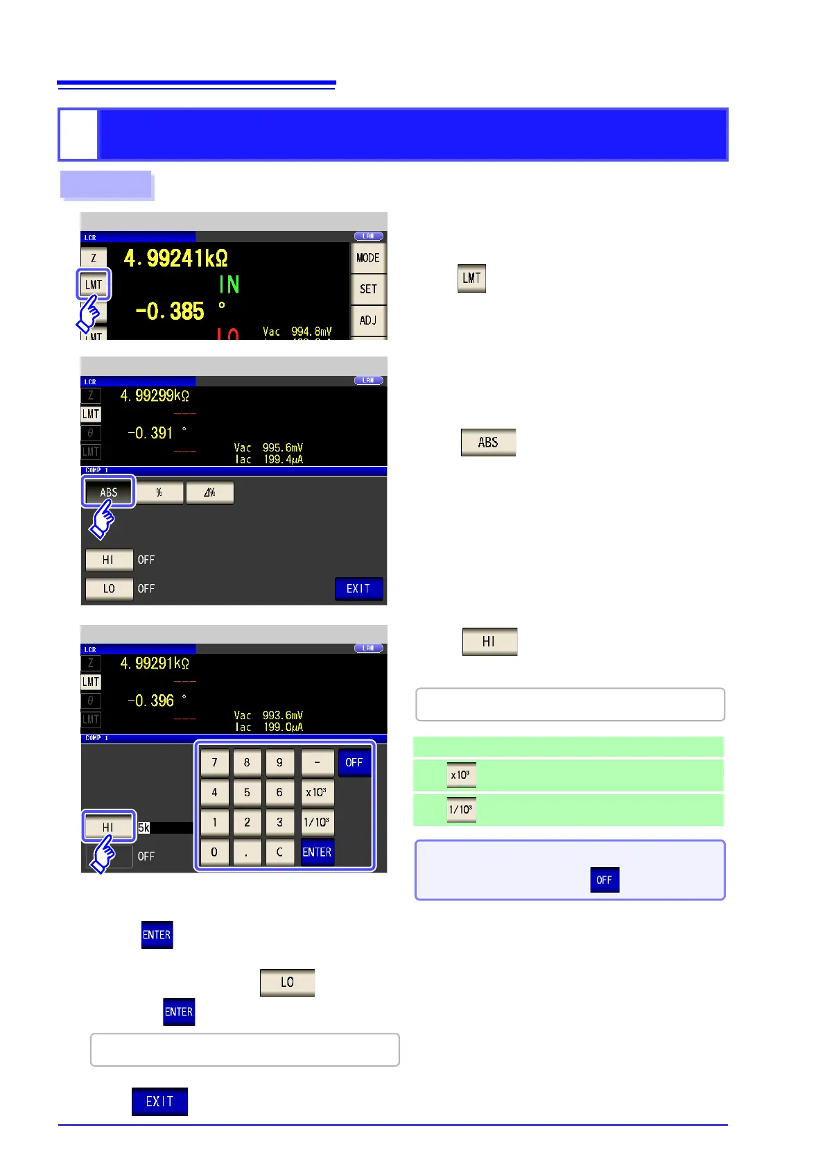 Return to Step 2, press , use the numeric keypad to set the lower limit value,