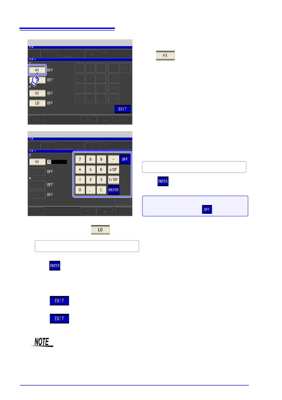 Return to step 7, press , and use the numeric keypad to enter the lower limit value.
