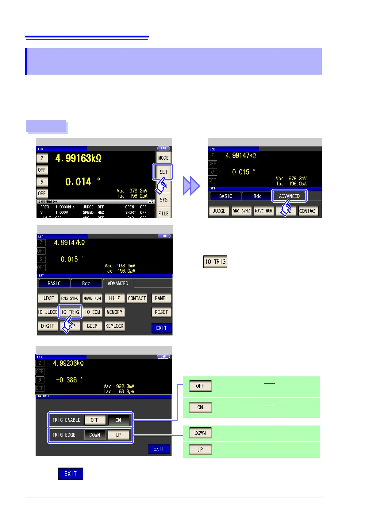 abling trigger input during measurement. Furthermore, you can also select either the rising edge or falling
