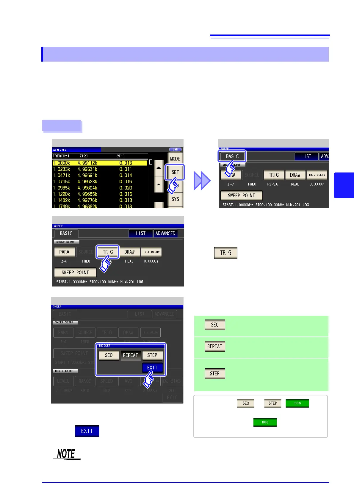 Set the trigger. In ANALYZER mode, sweeping is performed in accordance with the trigger setting that is set