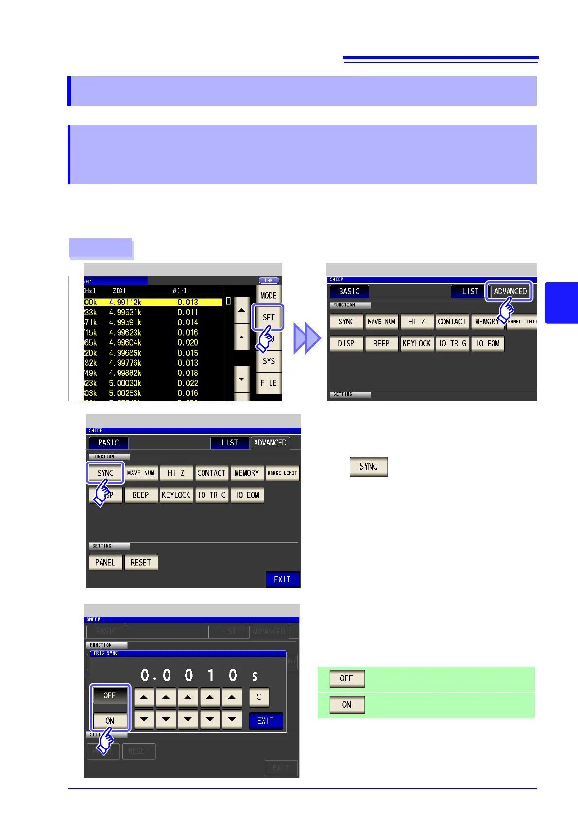 Select ON/OFF for the trigger synchronous