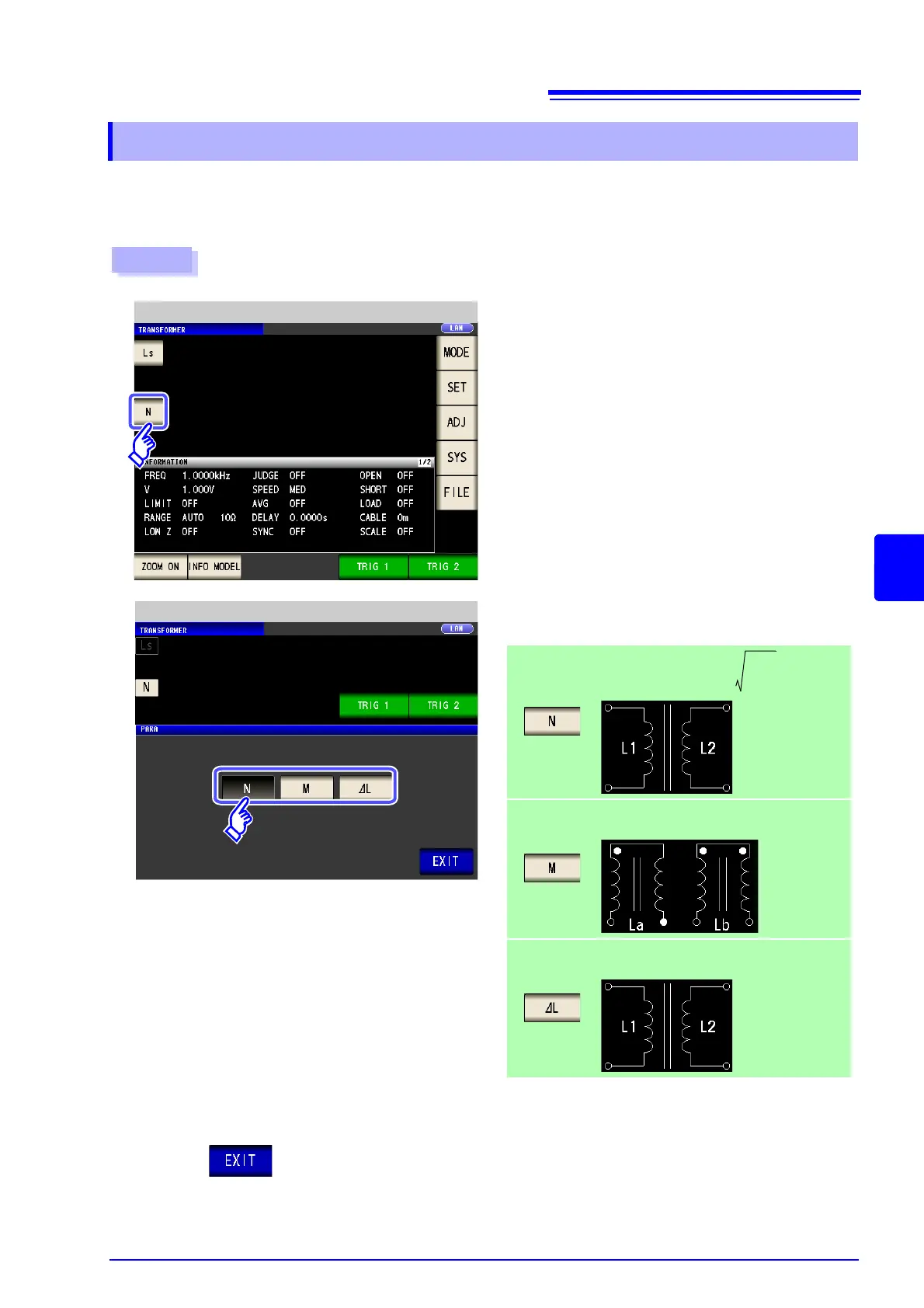 This section describes how to select winding ratio (N), mutual inductance (M), or inductance difference (L) as