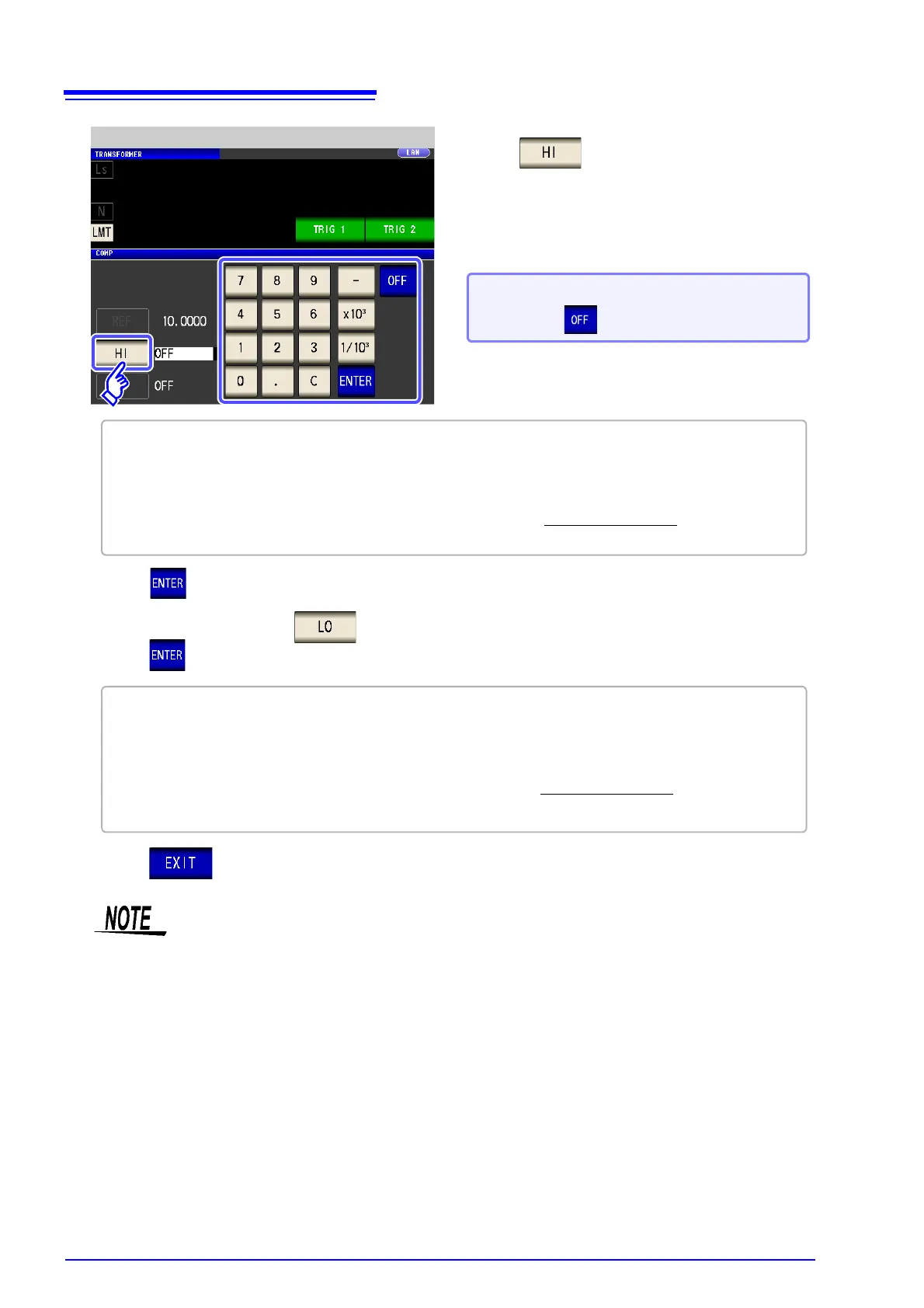 Return to step 2, press , use the numeric keypad to enter the lower limit value, and