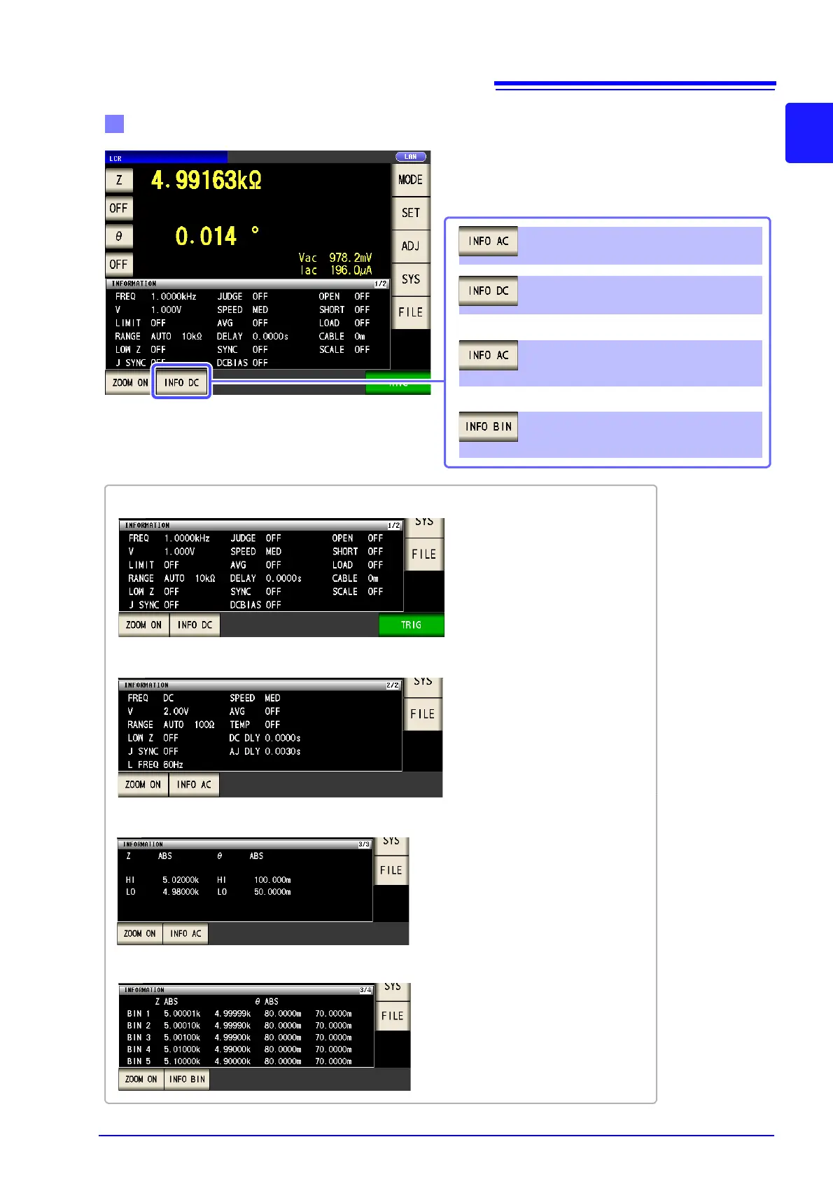 When displaying information about BIN measurement judgment standards