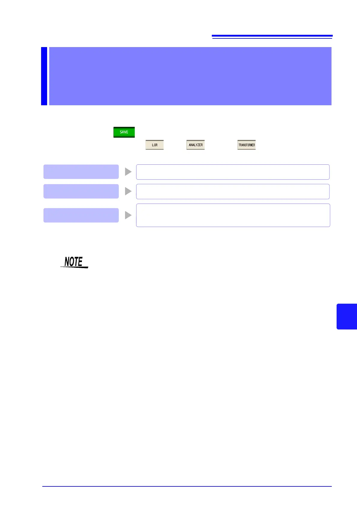 This section describes how to save data (measurement conditions and compensation values) to the instru-