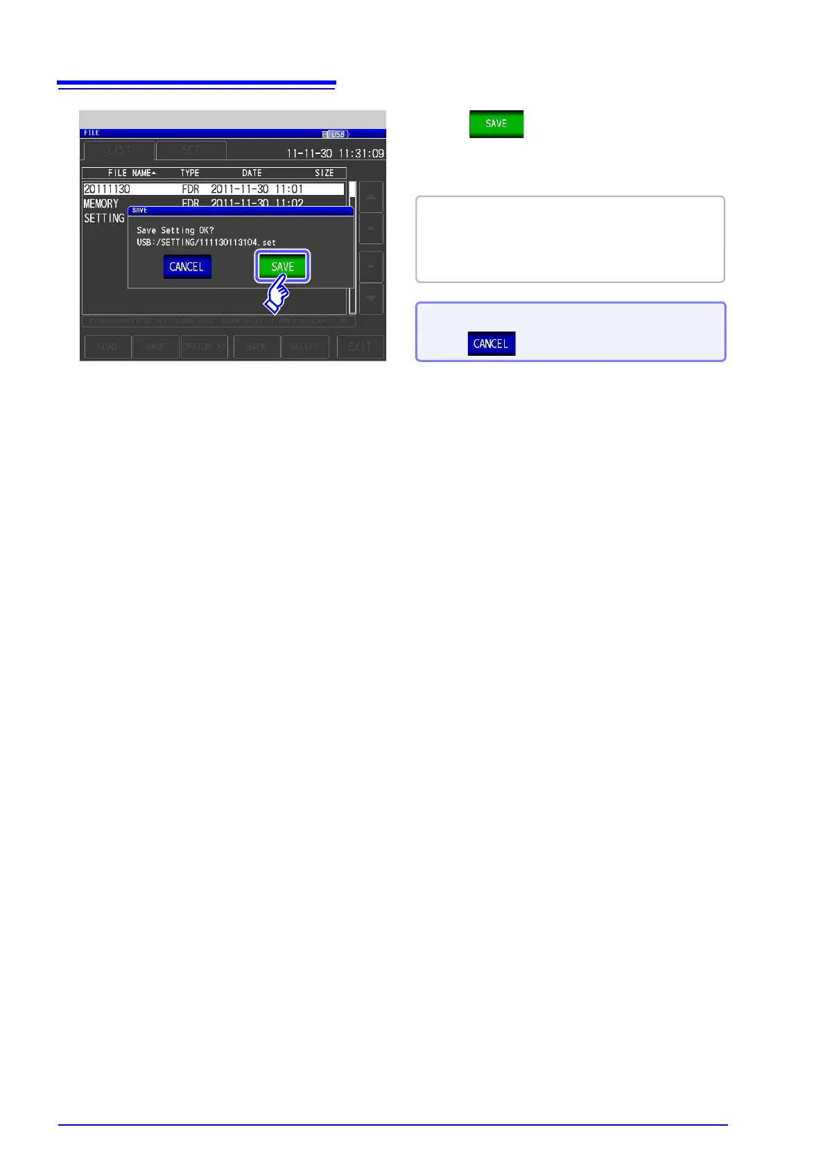 The setting file is saved to the [SETTING] folder