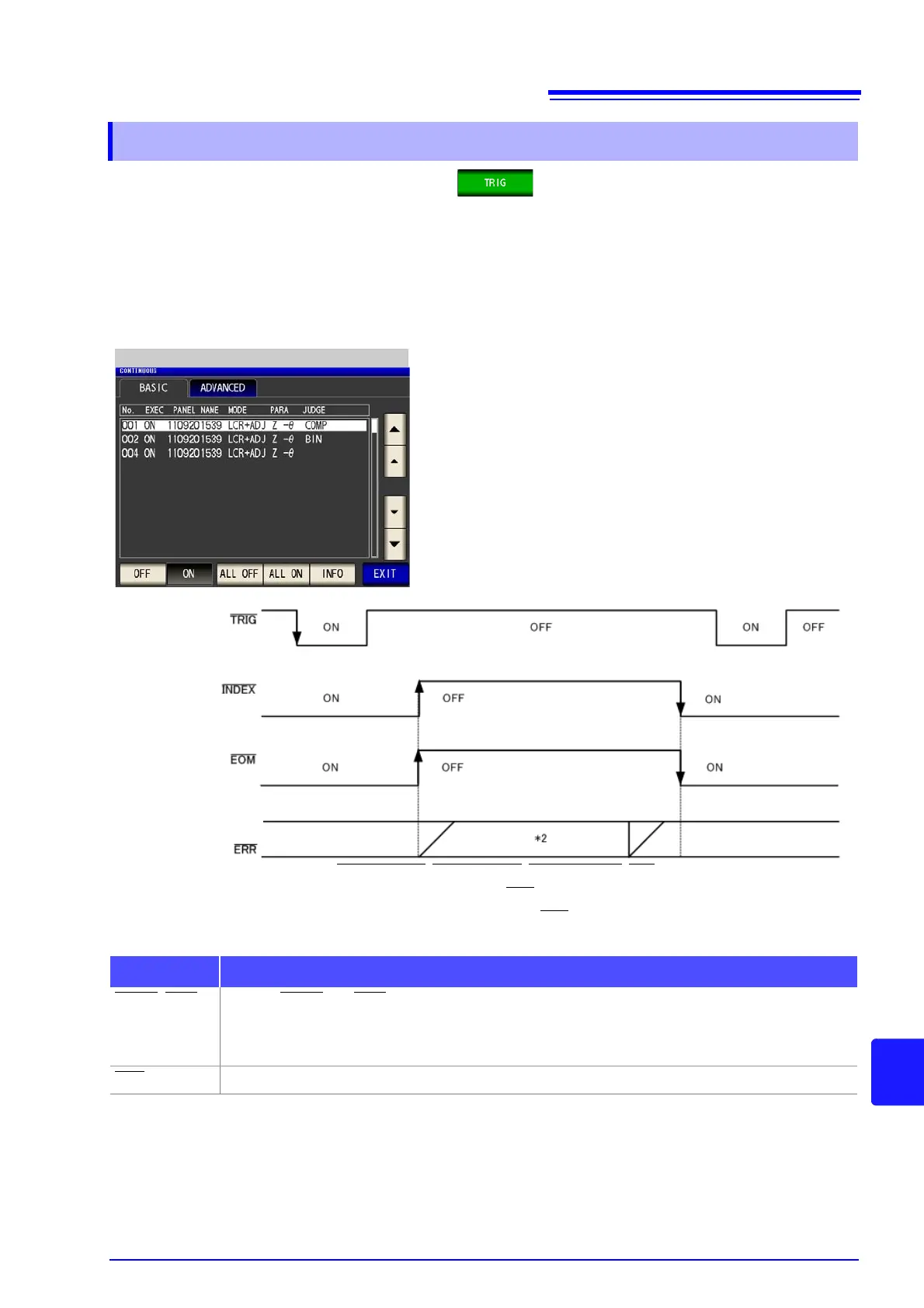 (In the timing examples, the valid edge of the TRIG signal is set to falling (ON).)