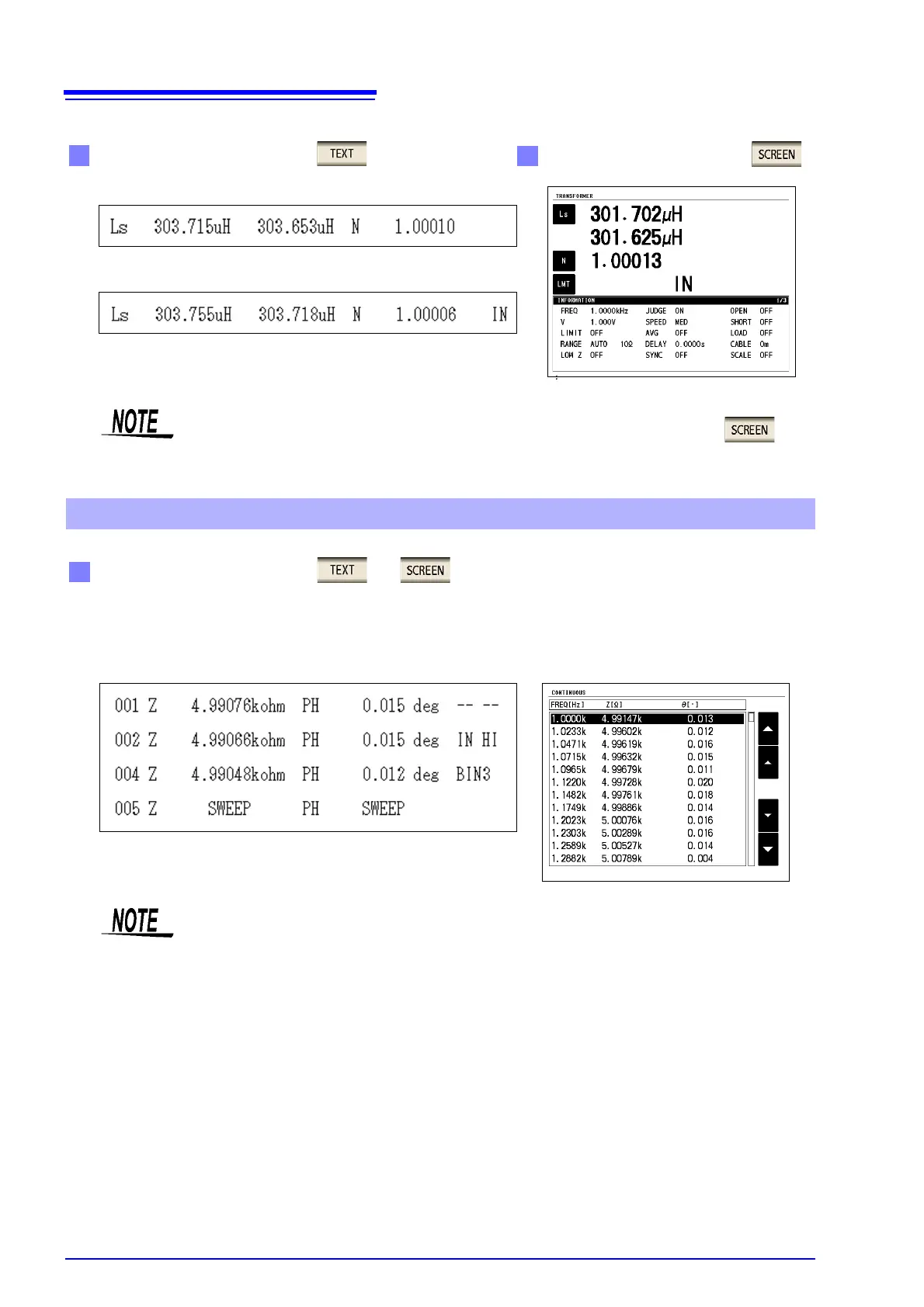 When measurement values are being displayed, they are printed as text.