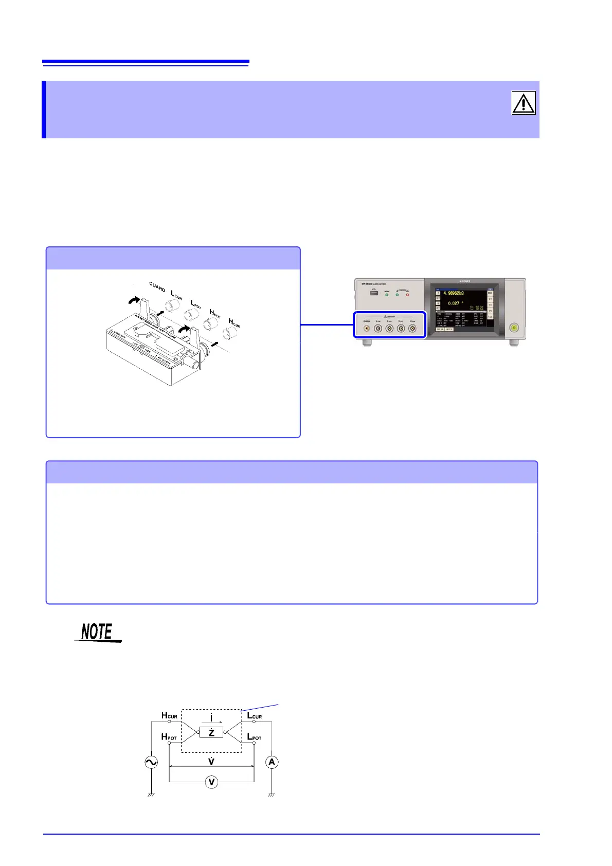 Connect your measurement cables, optional Hioki probes or test fixture to the measurement terminals.
