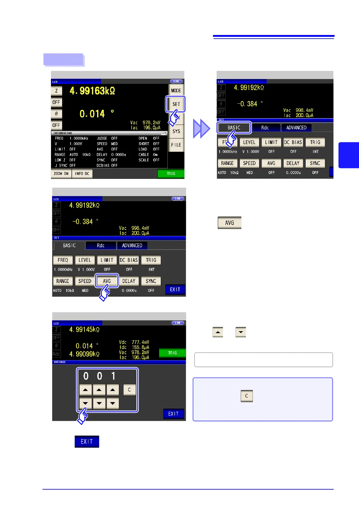 Use or to enter the number of aver-