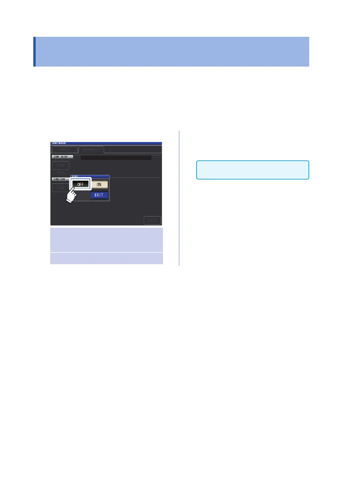 (Measurement screen) SET key>(SET screen) ADVANCED tab>DISP key