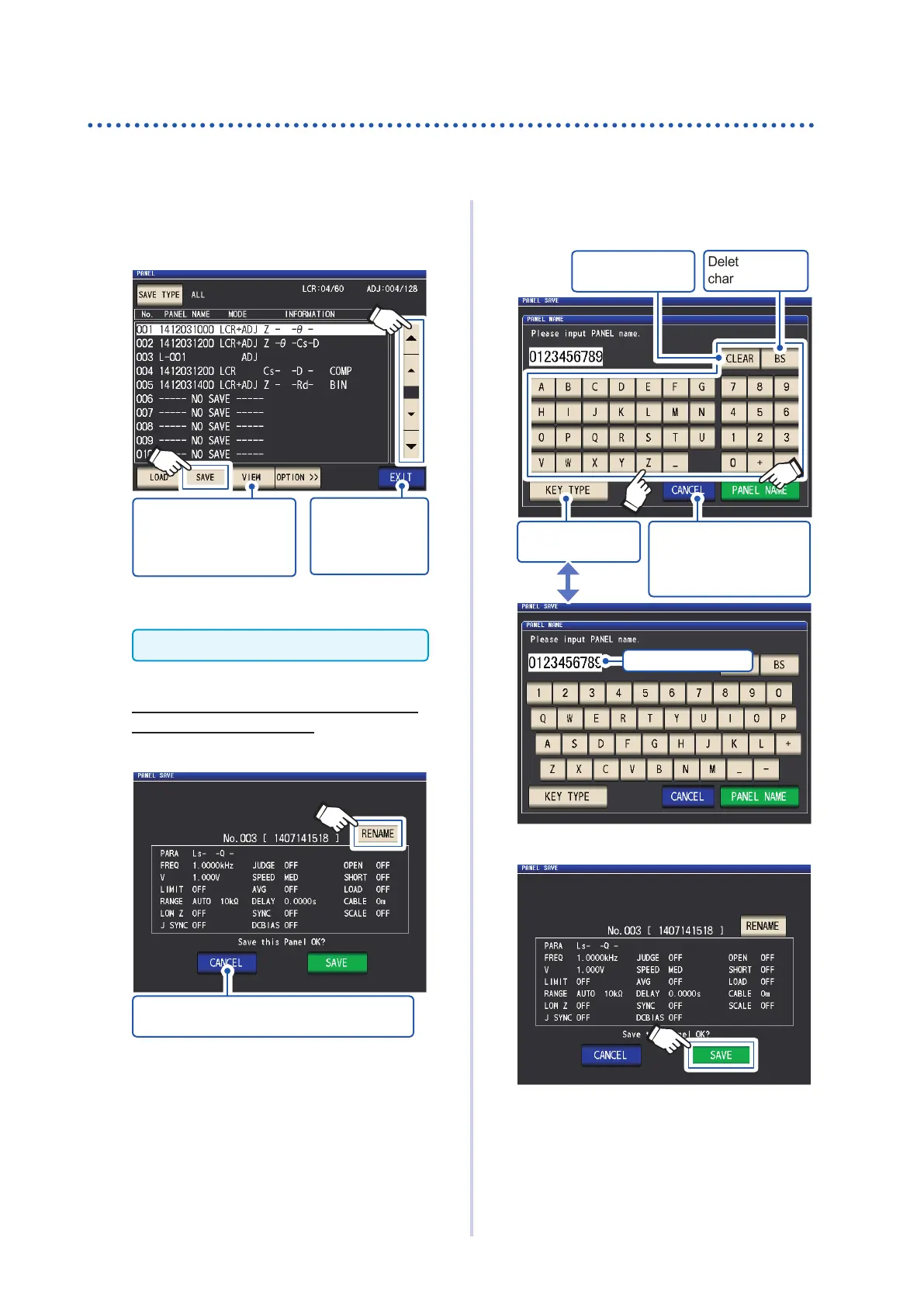 Touch the SAVE key to save the panel.