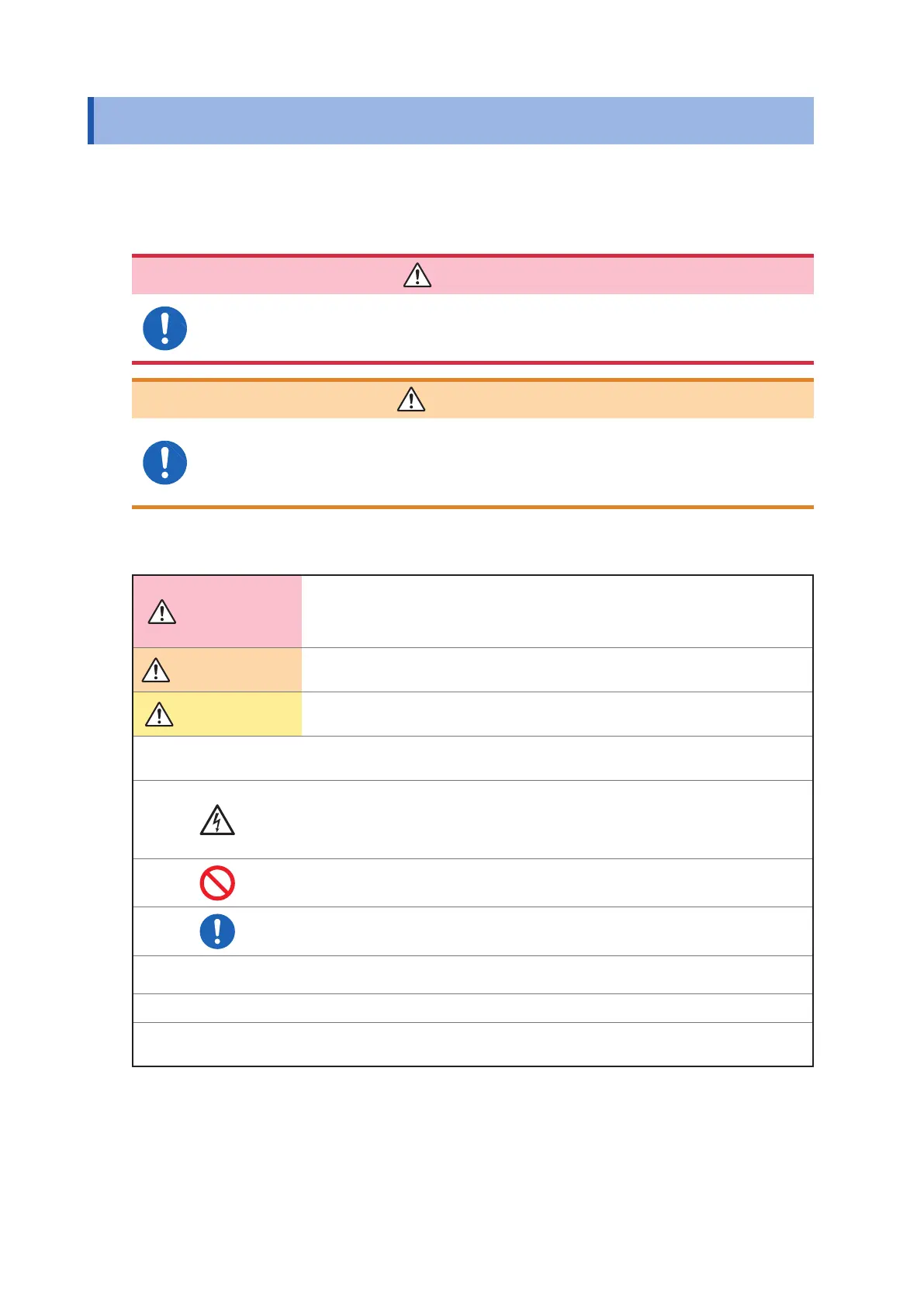 In this manual, the risk seriousness and the hazard levels are classied as follows.