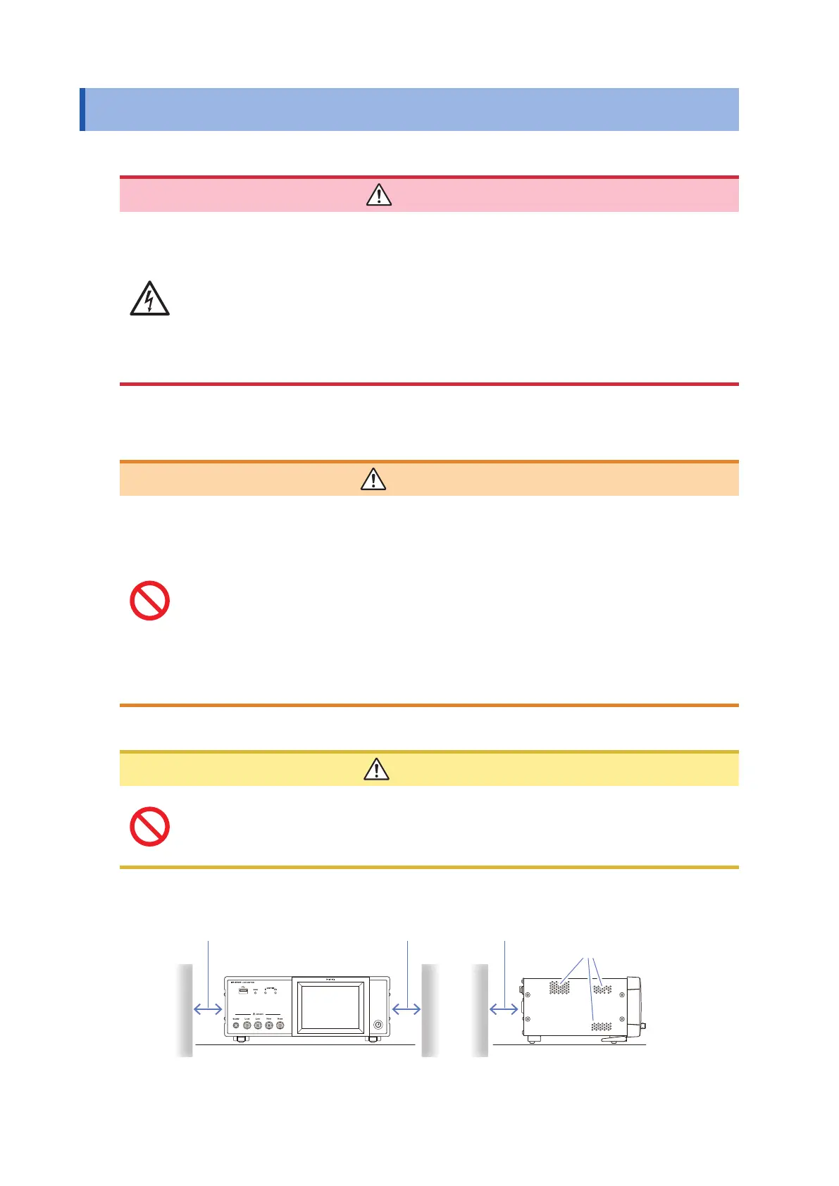 • Leave sufcient space around the instrument when positioning it. Failure to do so may