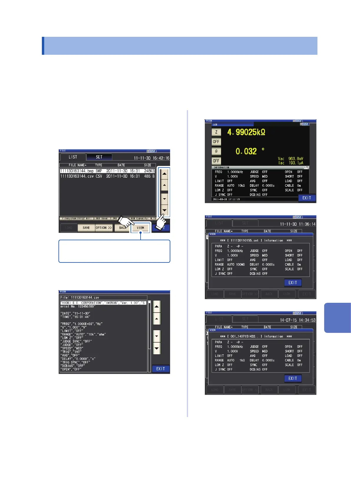 This section describes how to check measurement data les (CSV), screen copy les (BMP), set-