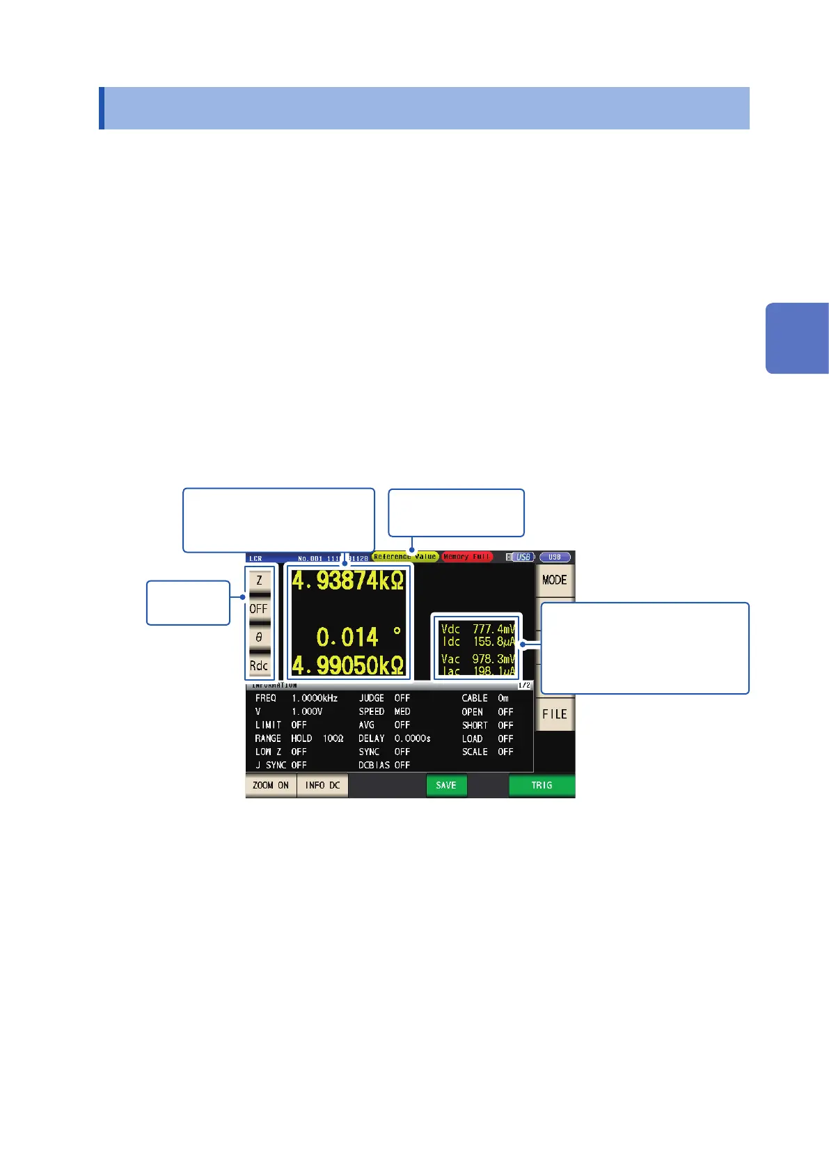 For more detailed information about the screen layout, see "Viewing measured values (Measurement