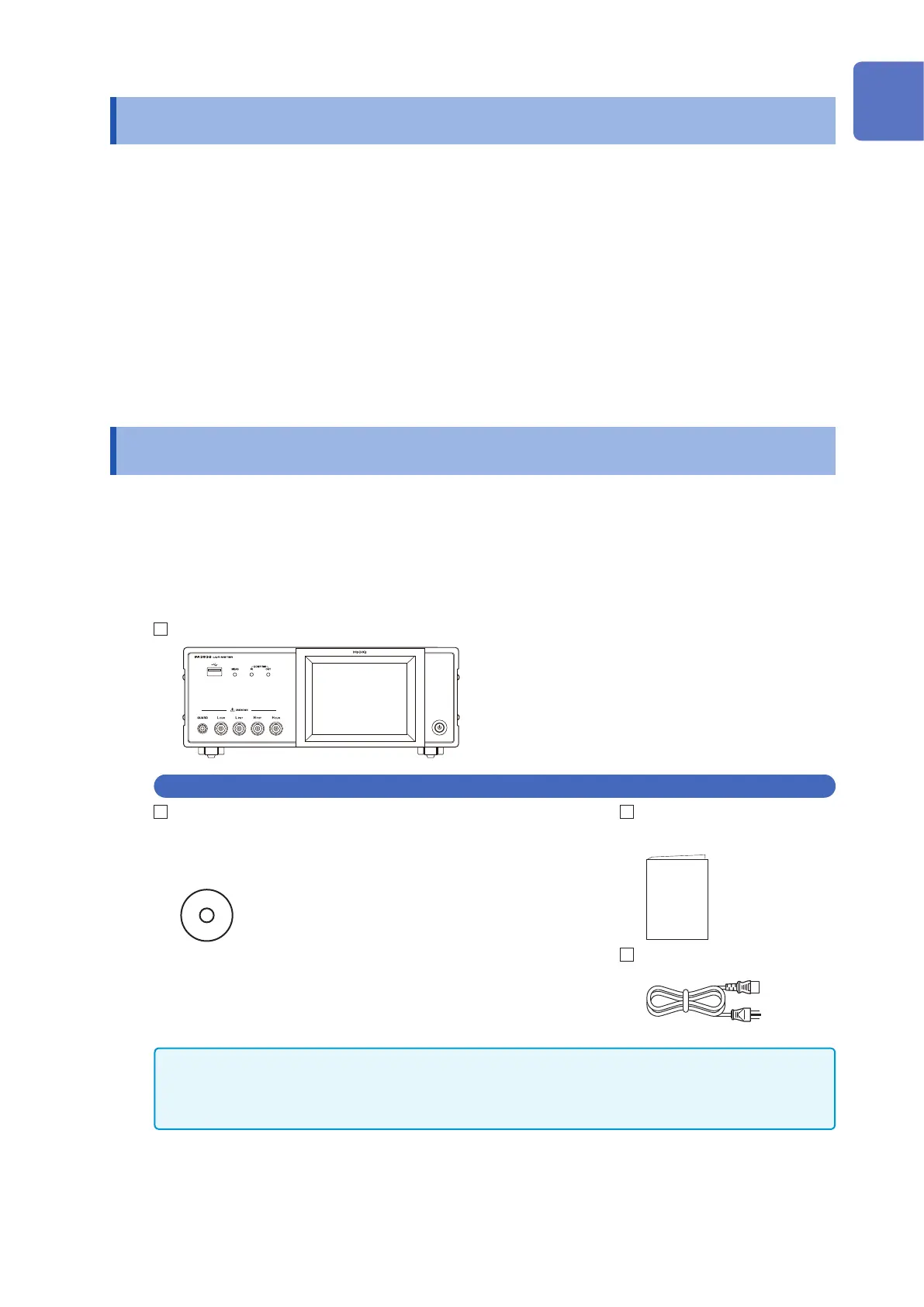 • Measurement cable and xture are not supplied with the instrument as standard equipment. You should