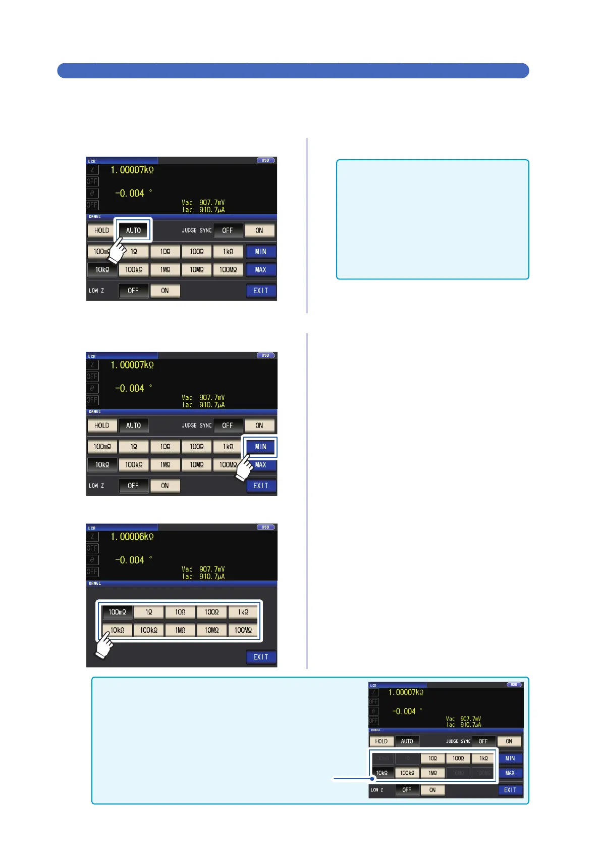 Select the AUTO range lower limit range.