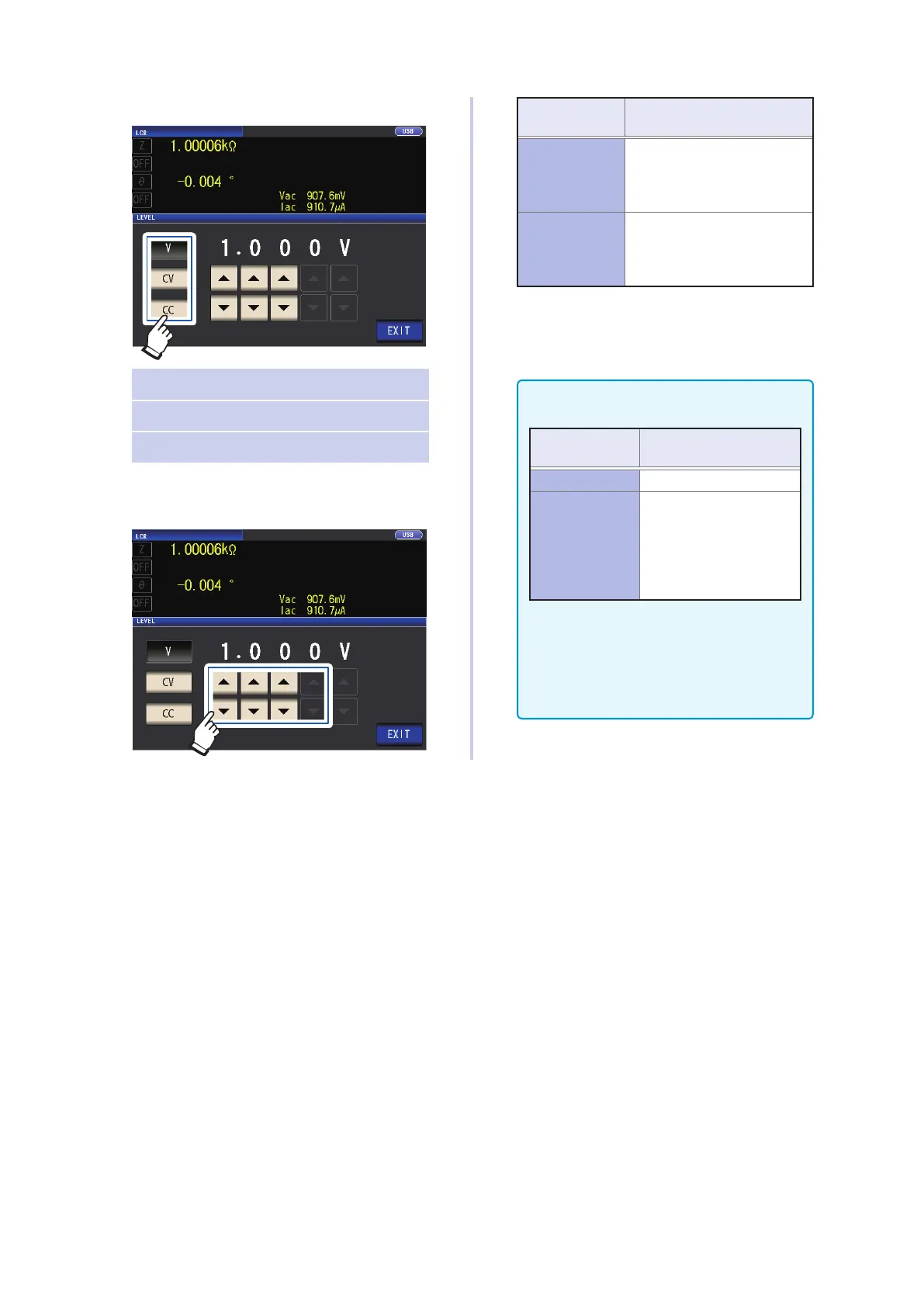 Use the key to enter voltage level