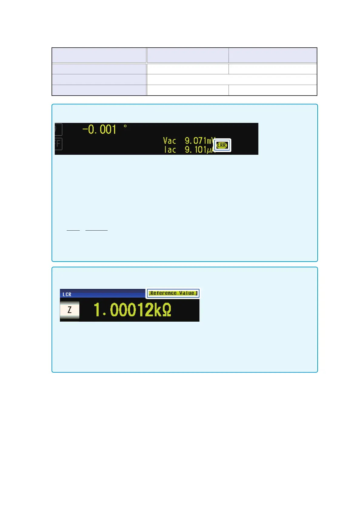 • When the measurement value is outside the guaranteed accuracy range, the following error massage ap-