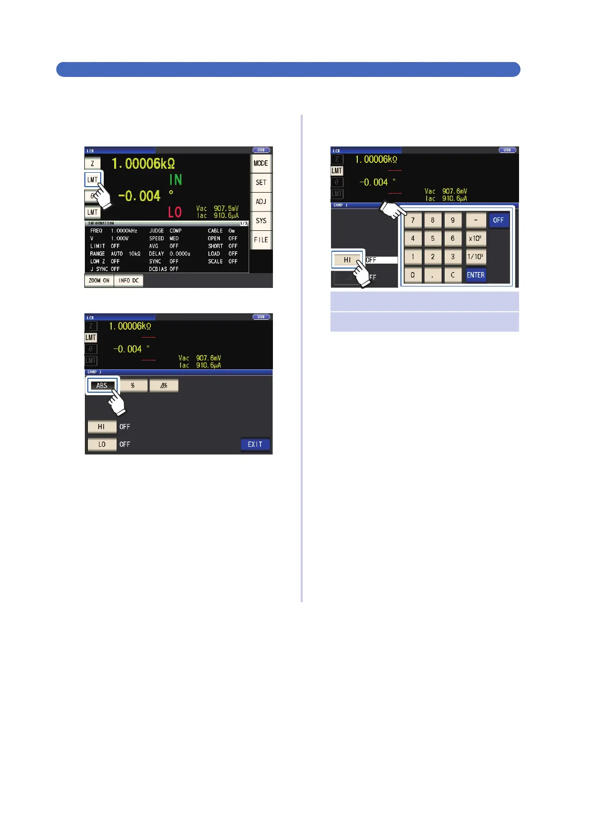Touch the HI key, and set the upper limit