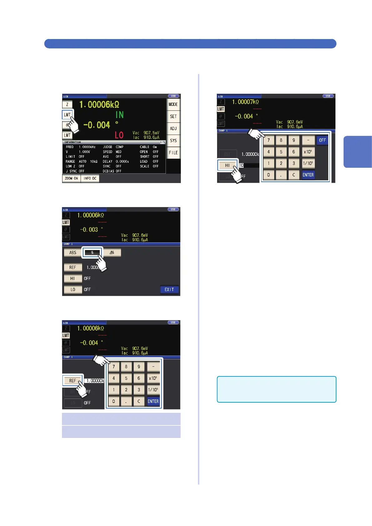 Touch the REF key, , and set the refer-