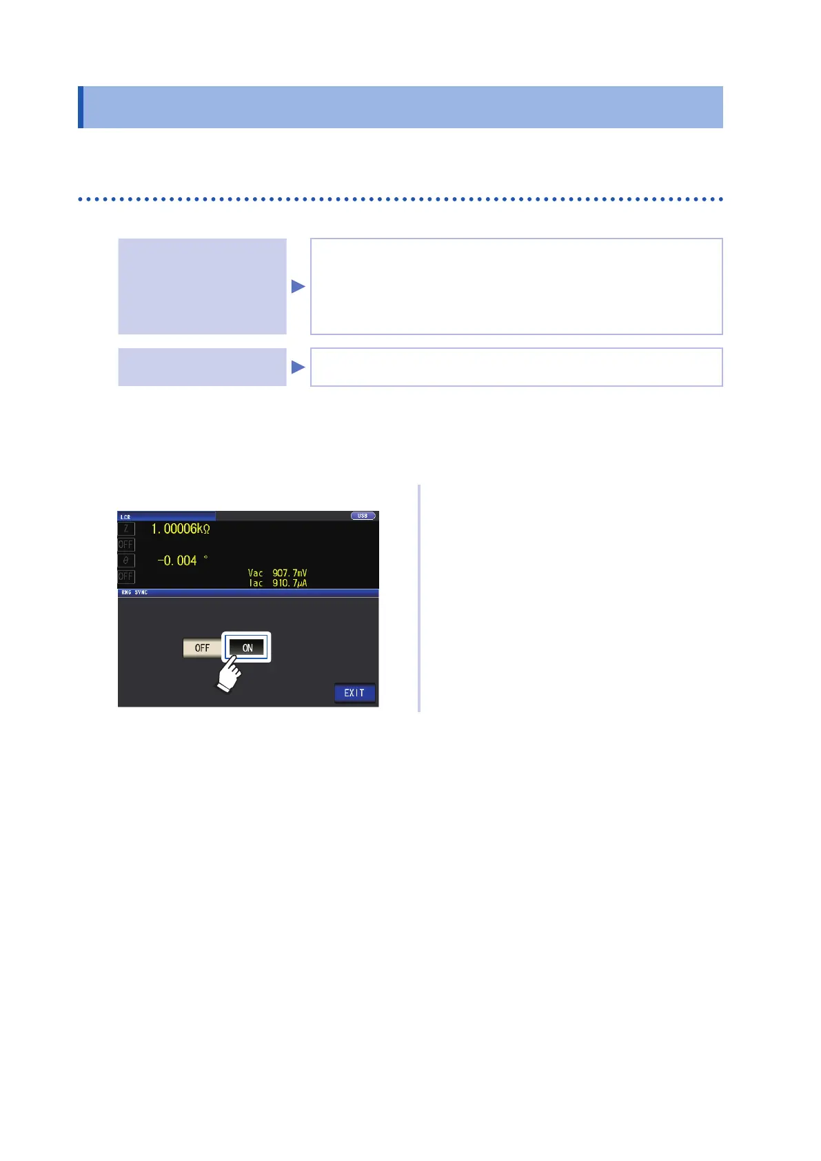 (Measurement screen) SET key>(SET screen) ADVANCED tab>RNG SYNC key