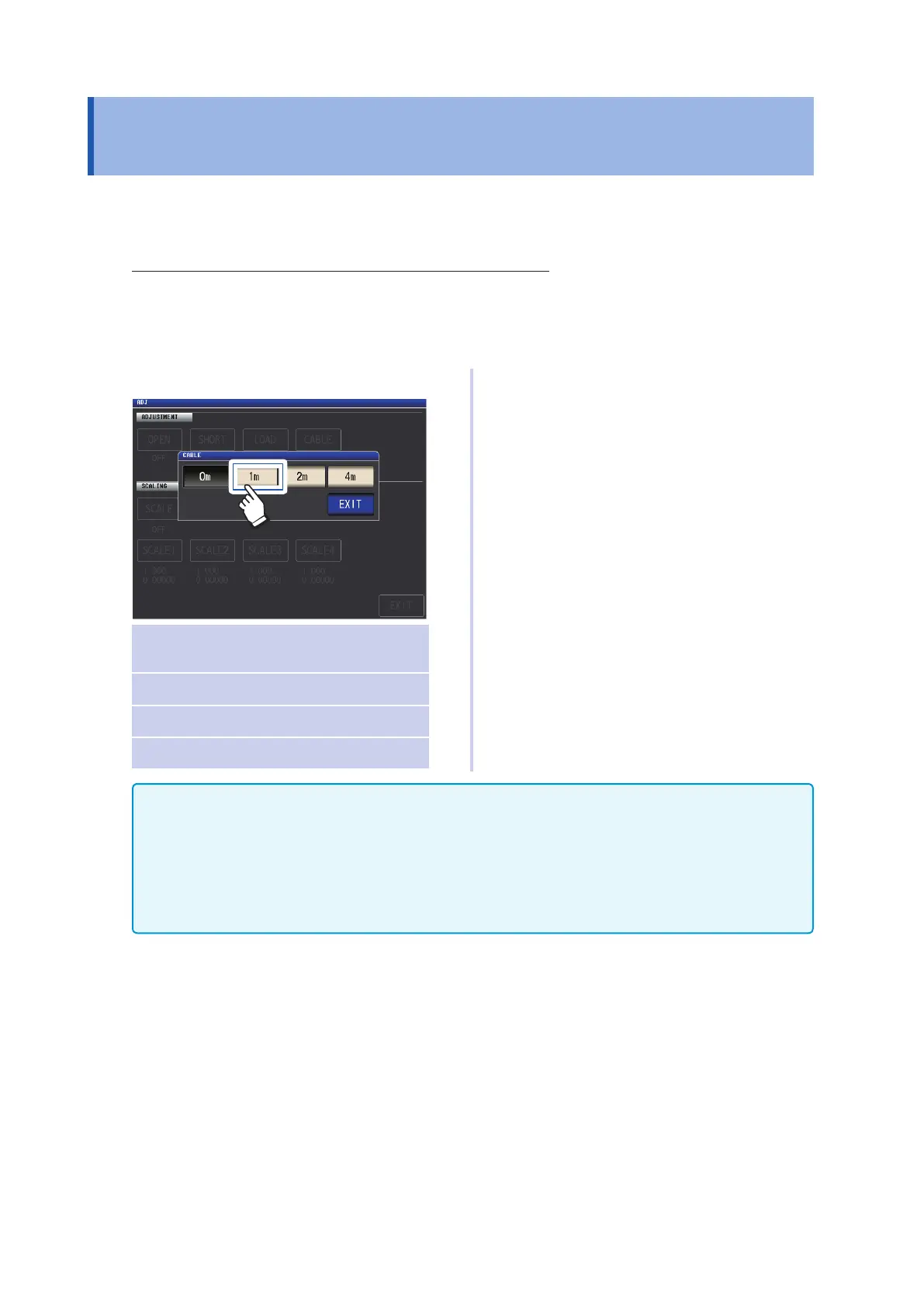 (Measurement screen) ADJ key>(ADJ screen) CABLE key