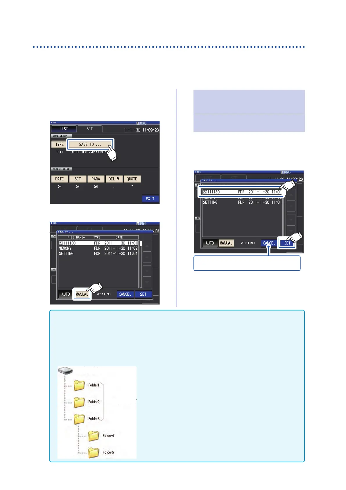 (Measurement screen) FILE key>(FILE screen) SET tab