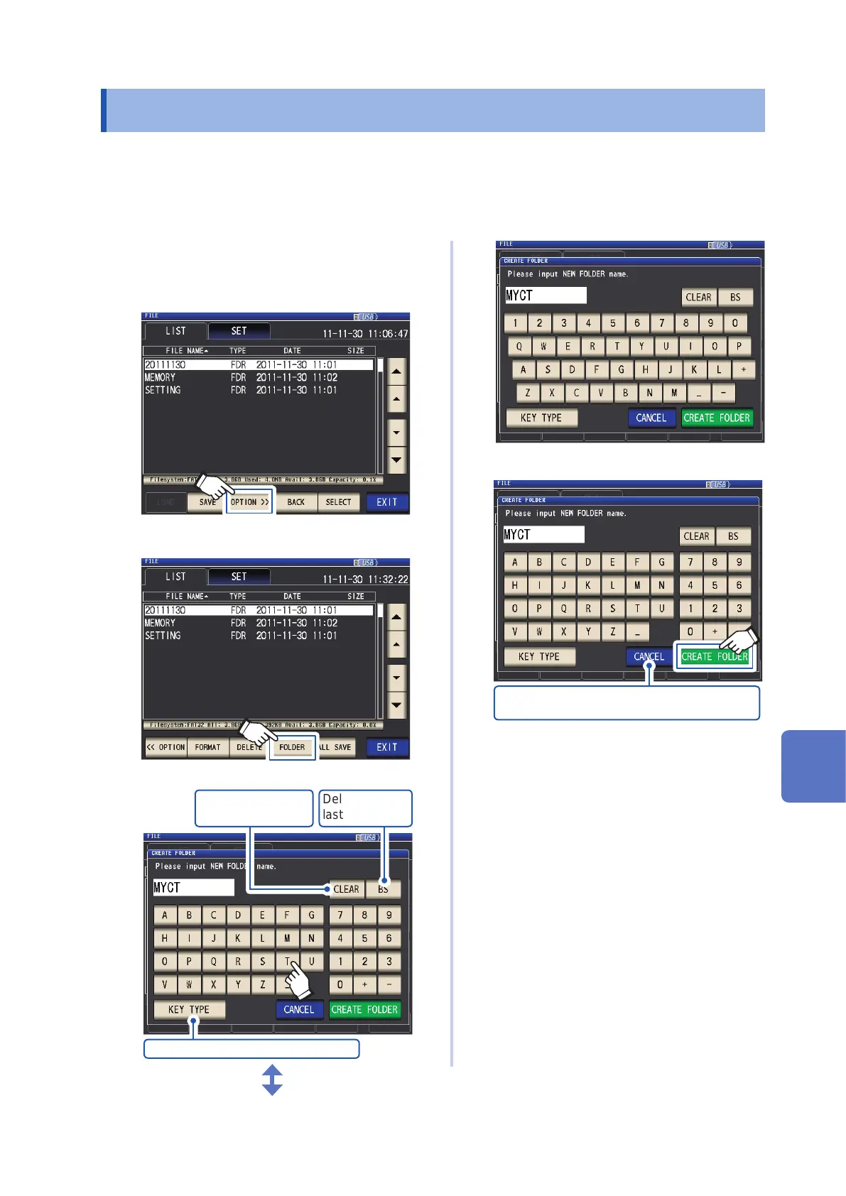 (Measurement screen) FILE key>(FILE screen) LIST tab