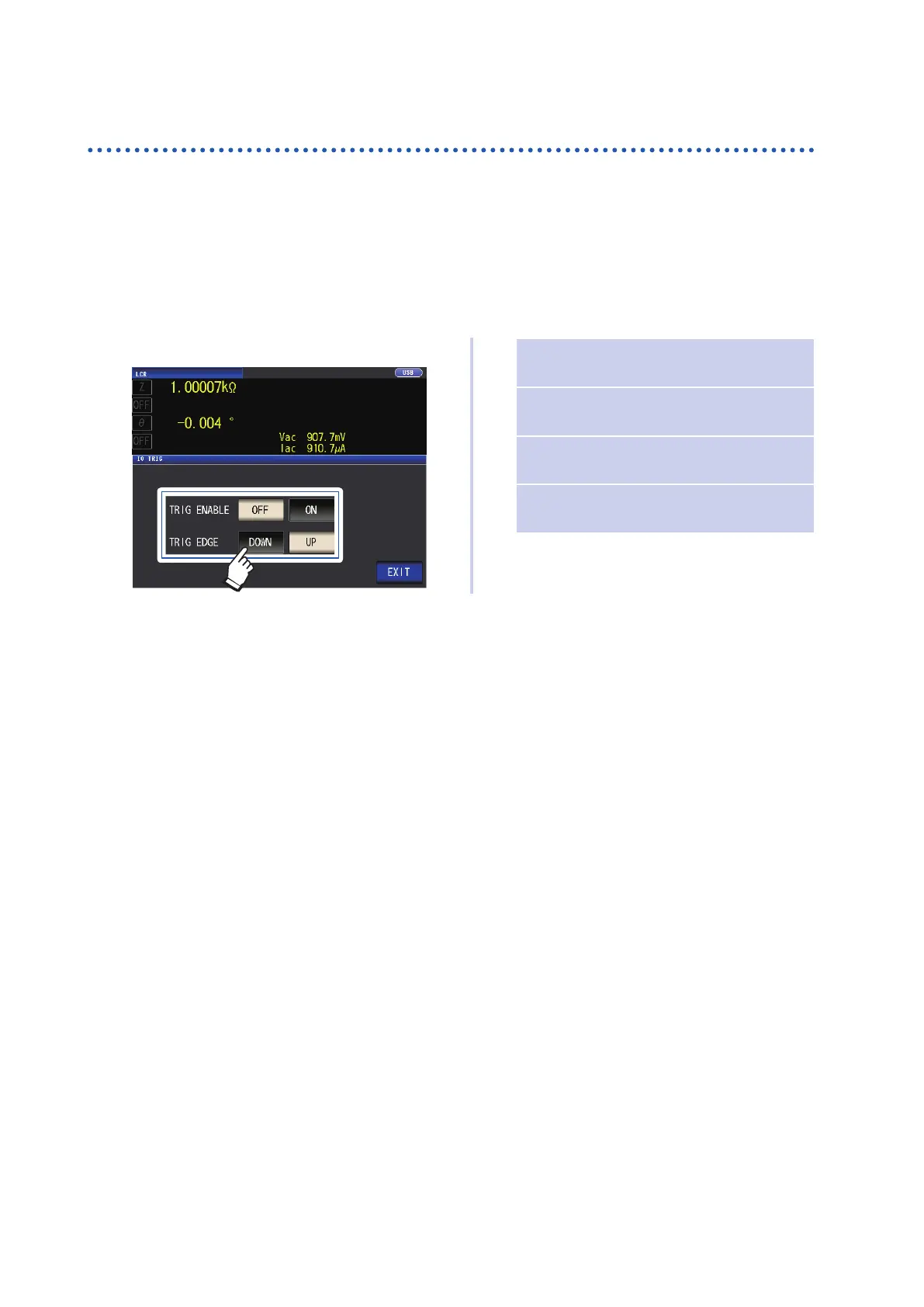 (Measurement screen) SET key>(SET screen) ADVANCED tab>IO TRIG key