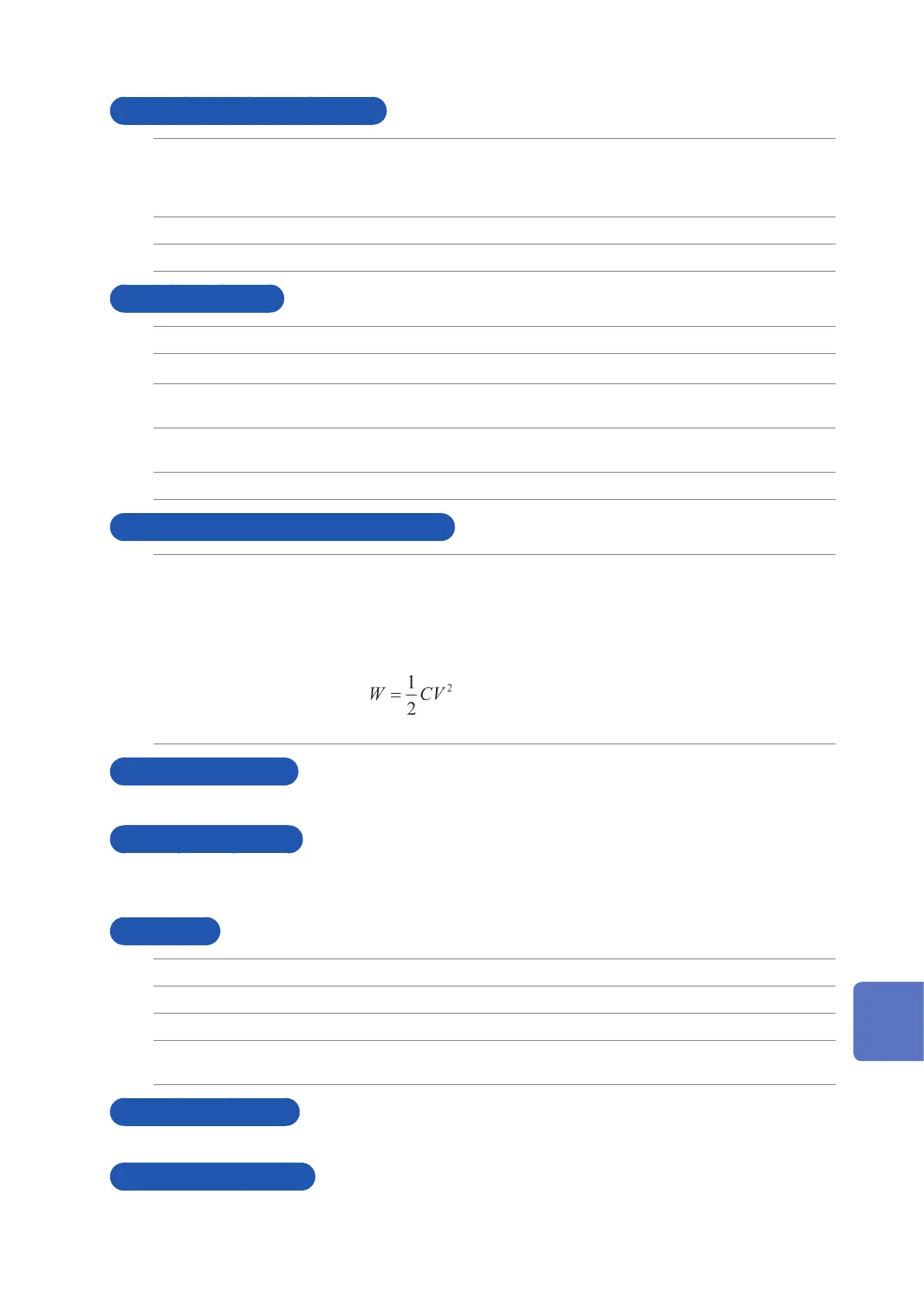 • The energy W [J] stored in capacitance C [F] at voltage V [V] can be deter-