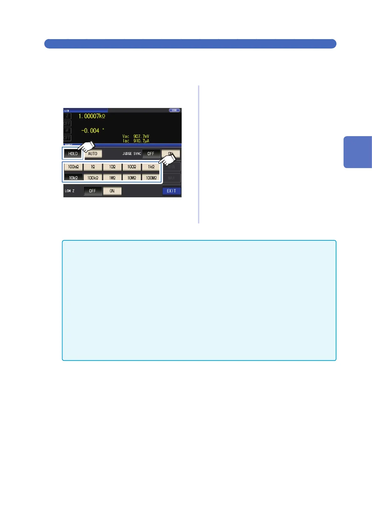 • The measurement range is set based on the total impedance of the sample and measurement cable.