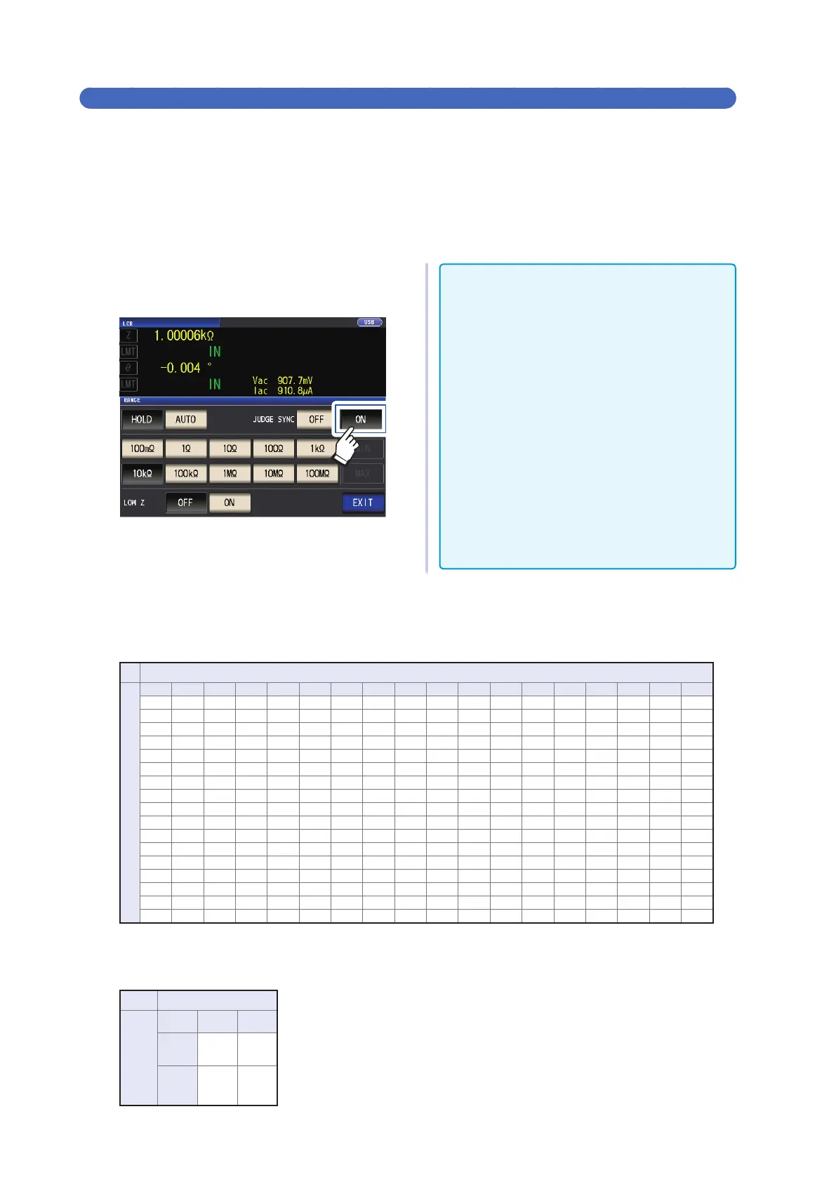 When the JUDGE SYNC setting is turned on, the instrument will select the optimal range automati-