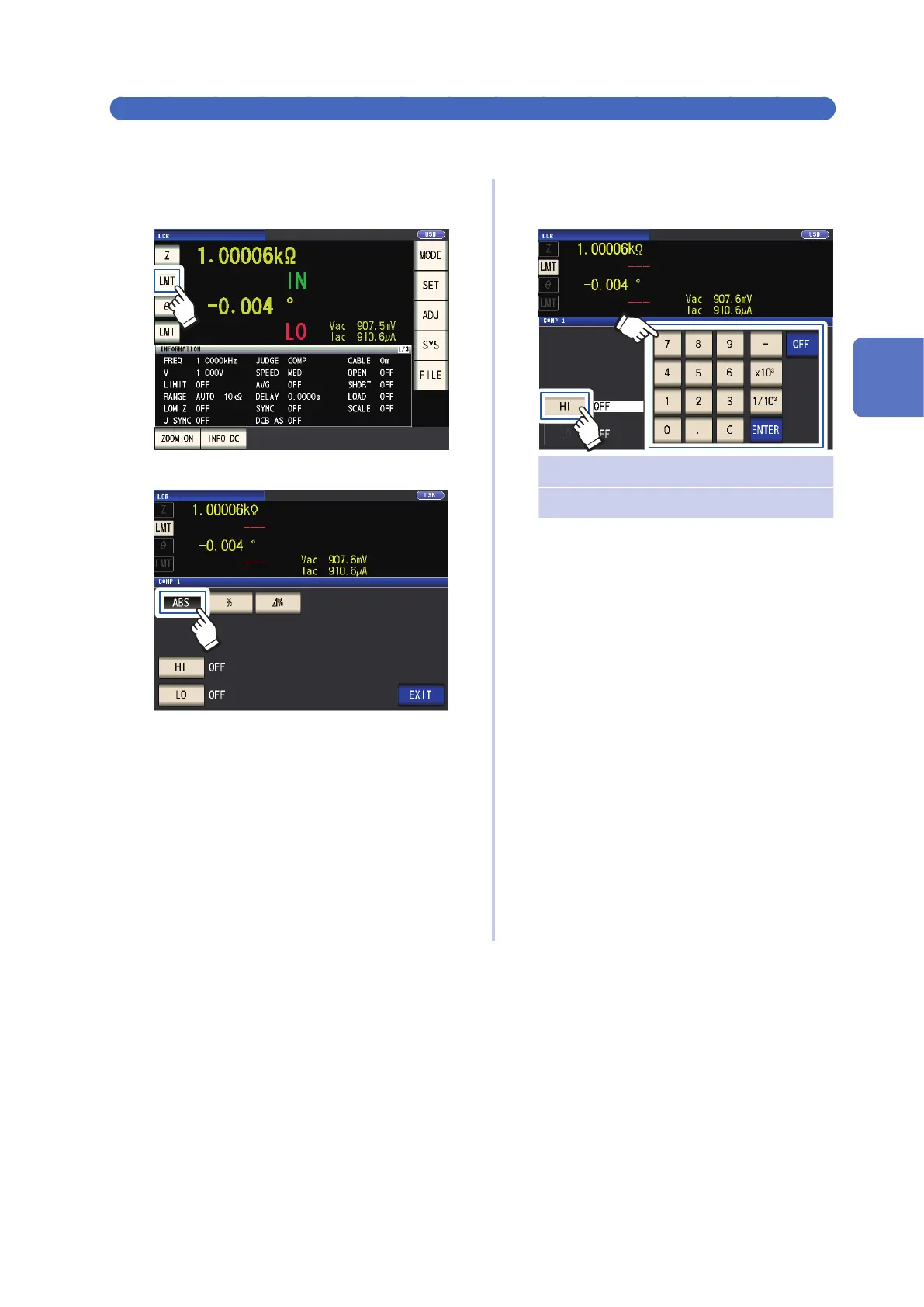 Touch the HI key, and set the upper limit
