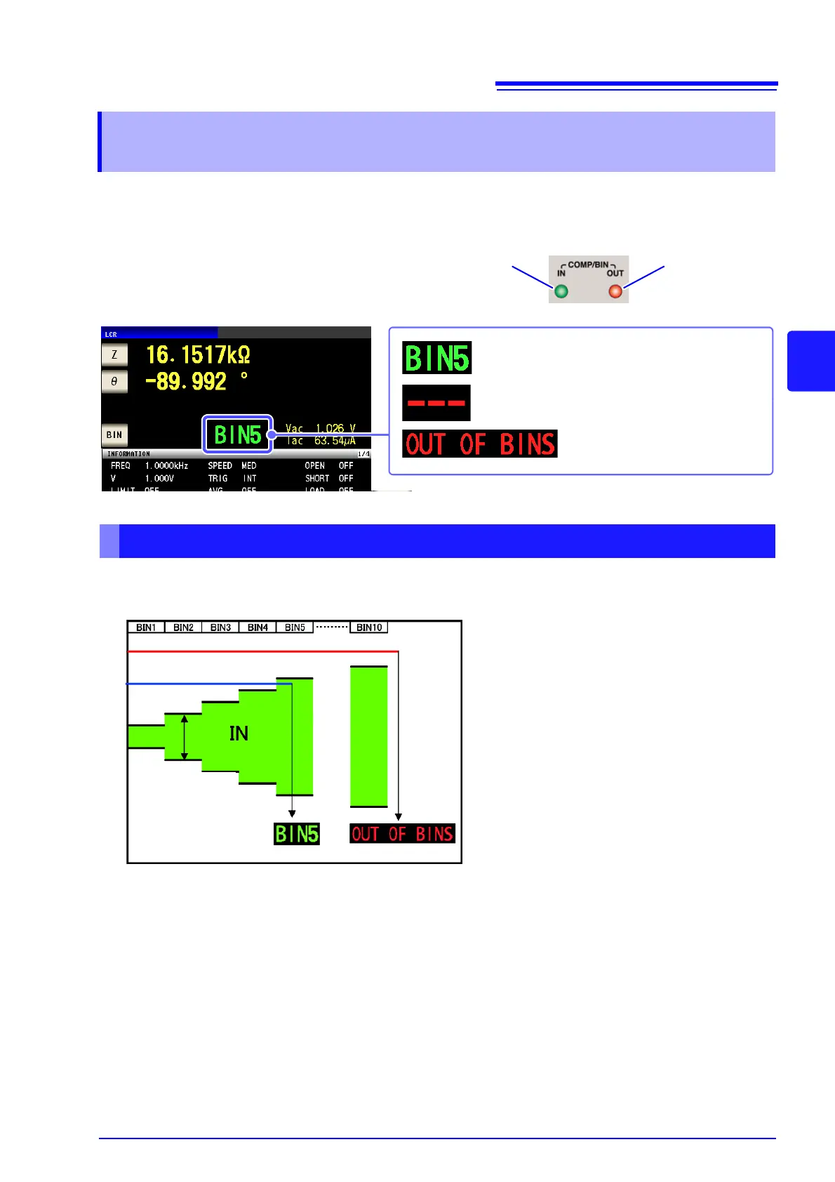 so OUT OF BINS is displayed. In contrast, the first reference that measurement value B is judged to be