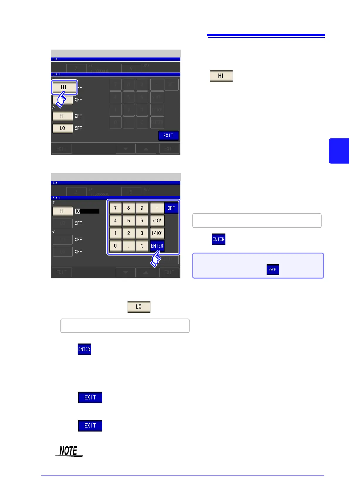 Return to step 7, press , and use the numeric keypad to enter the lower limit value.