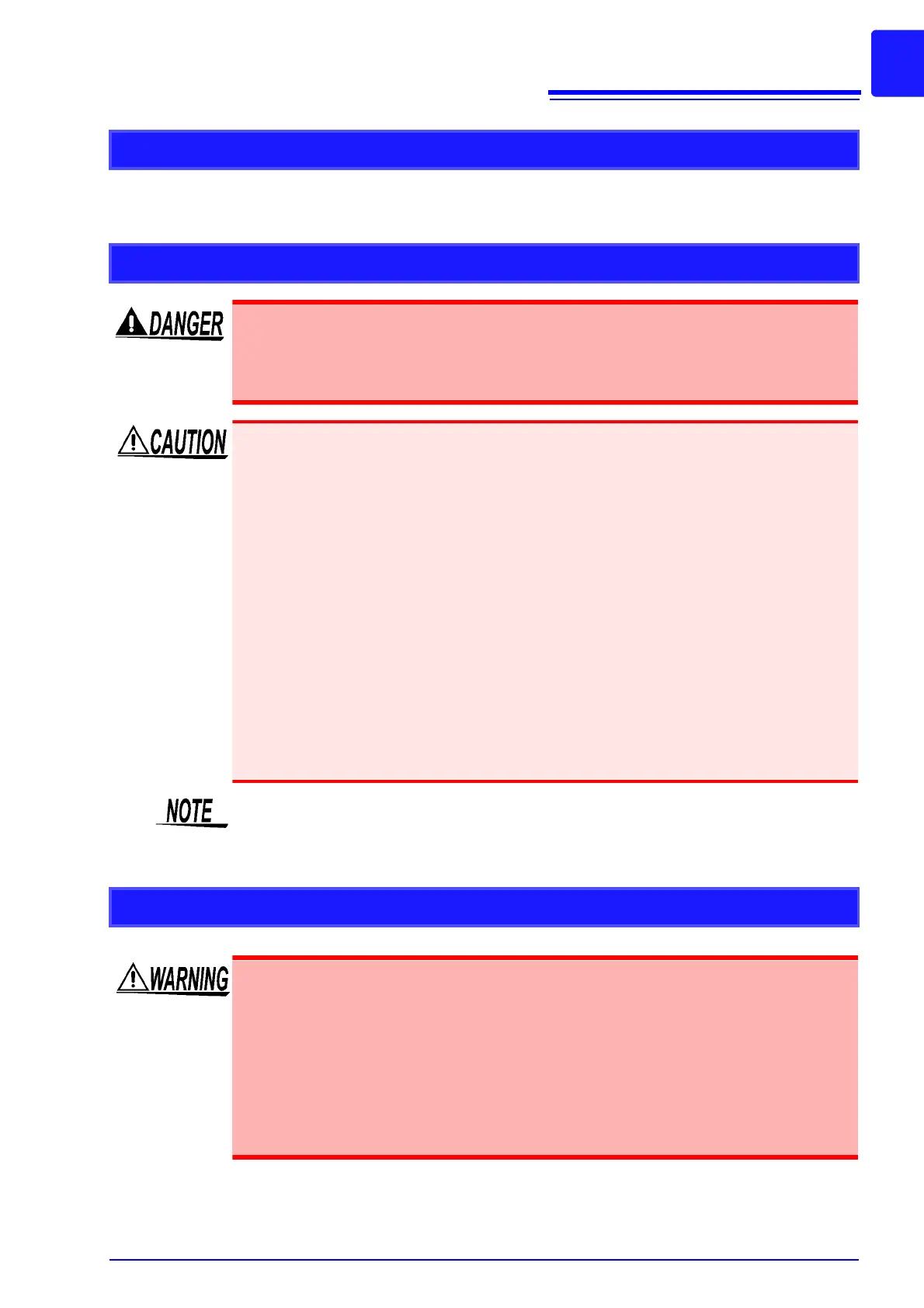 • Do not connect charged capacitors to measurement terminals or input voltages or cur-