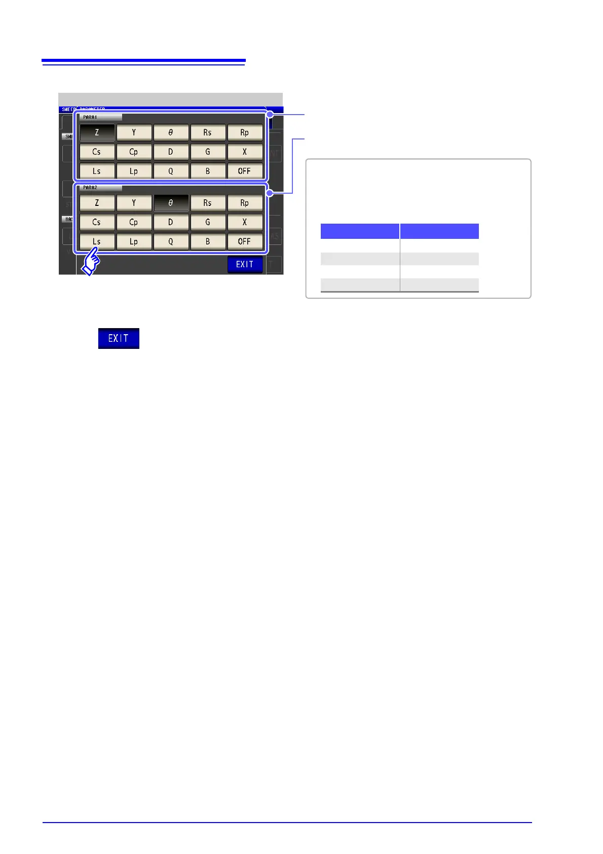 • The parameter settings of LCR mode and parame-