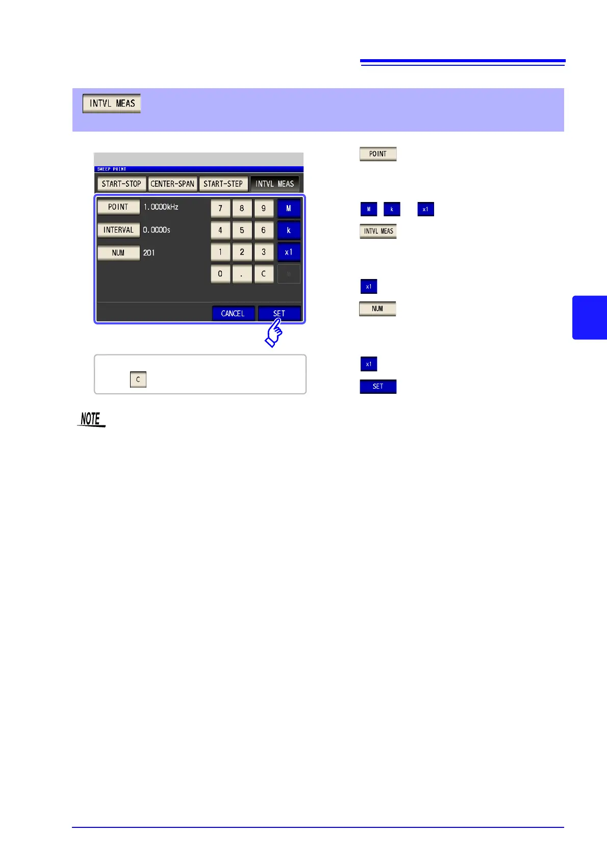 When the sweep range setting method is changed, the measurement interval for INTERVAL mea-