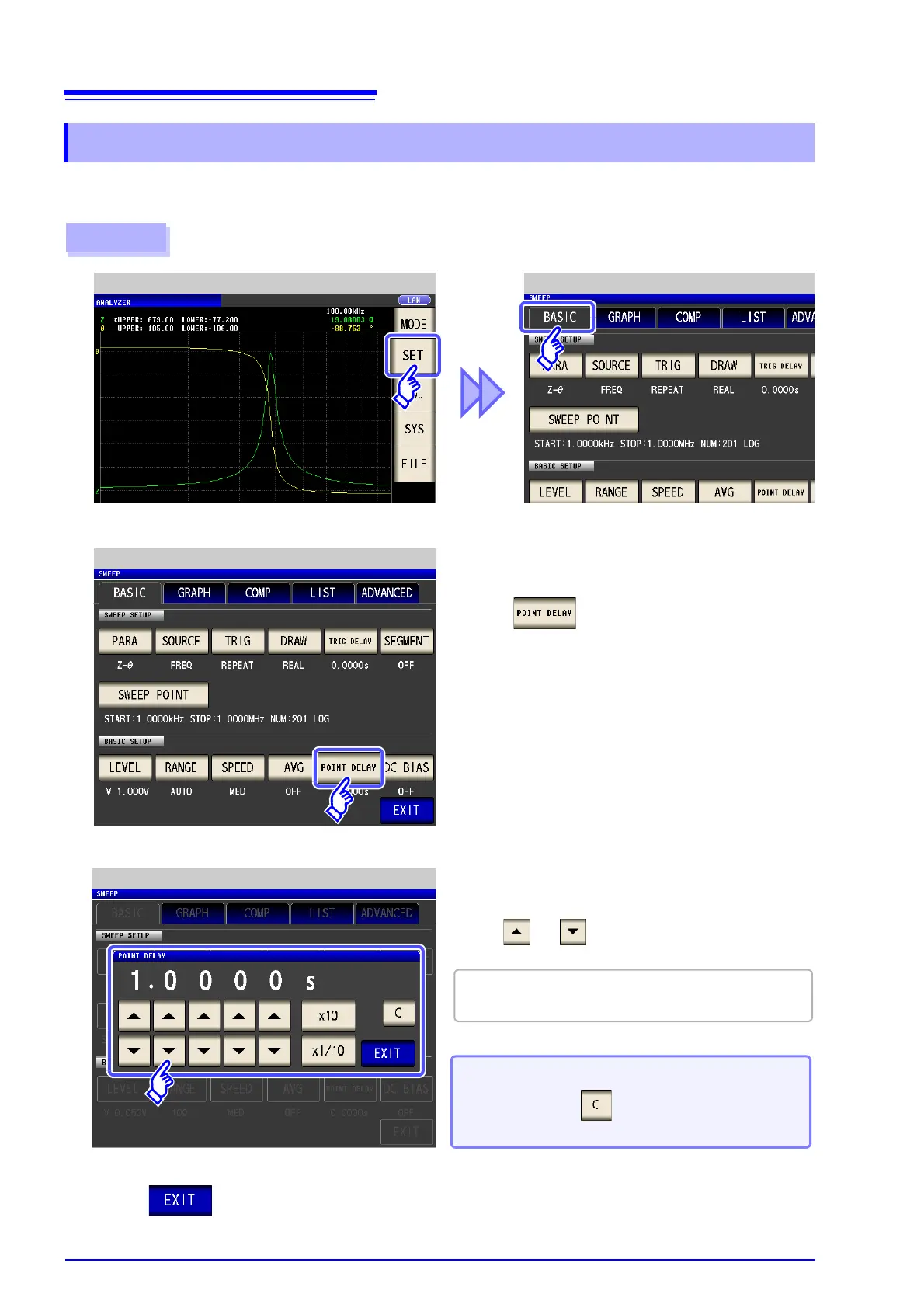 For the point delay setting, set the delay time for each sweep point.