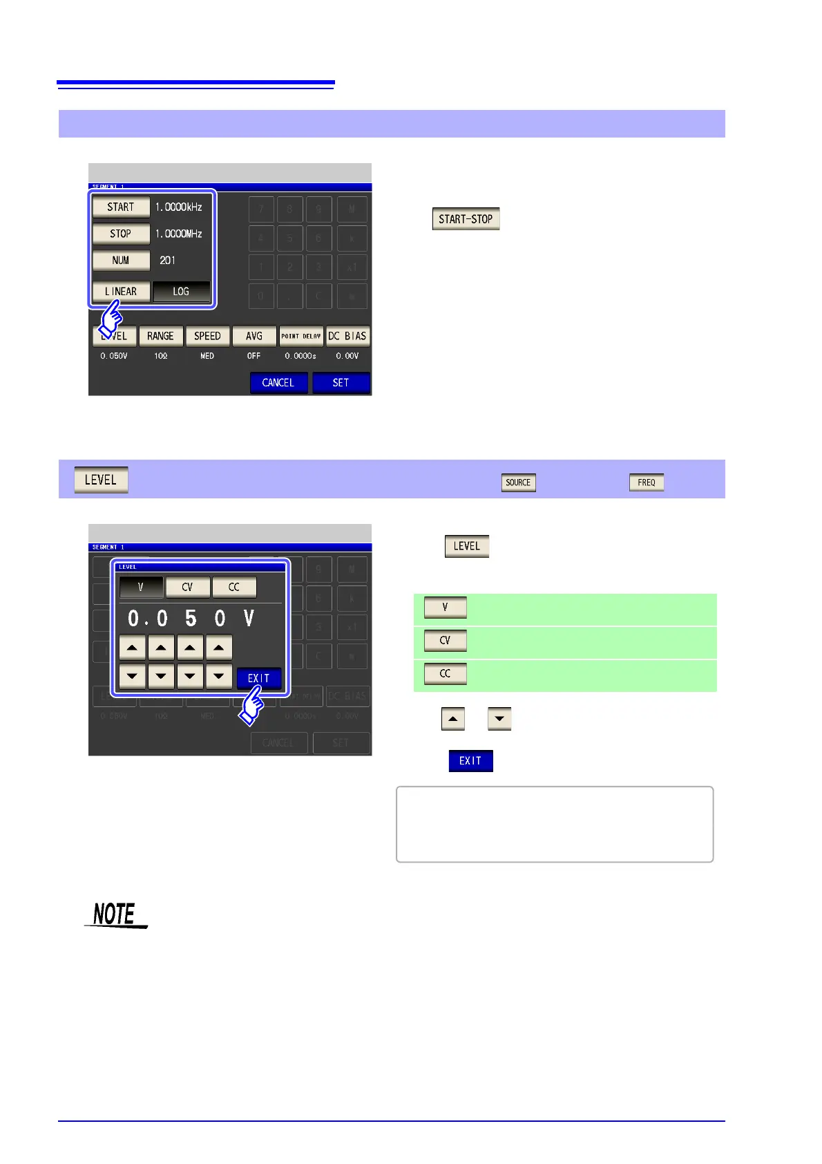 For details, refer to "4.2.1 Setting the Measurement frequency" (p. 41) and "4.2.2 Setting