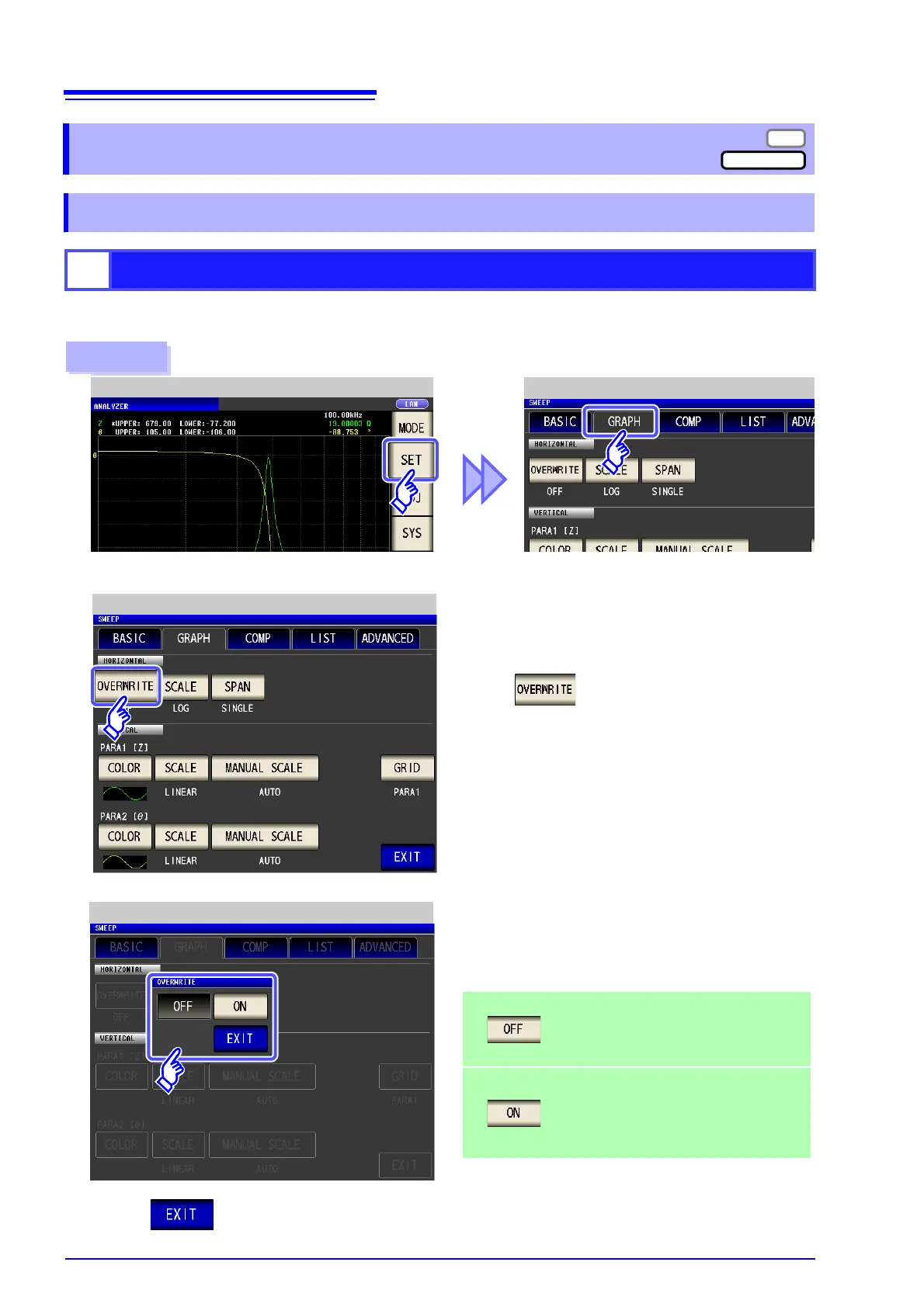 When sweep measurement is to be performed repeatedly, set the graph draw method.
